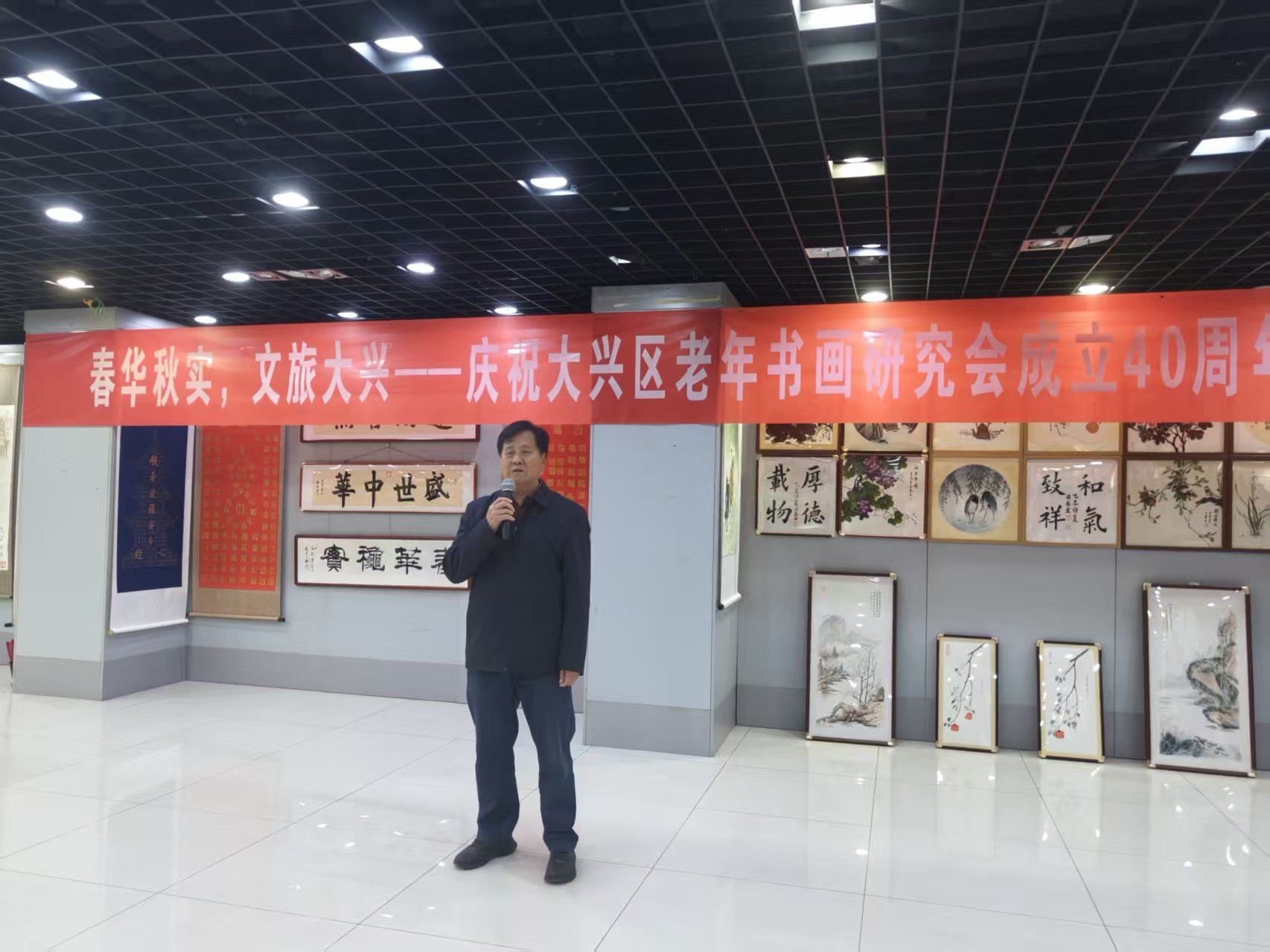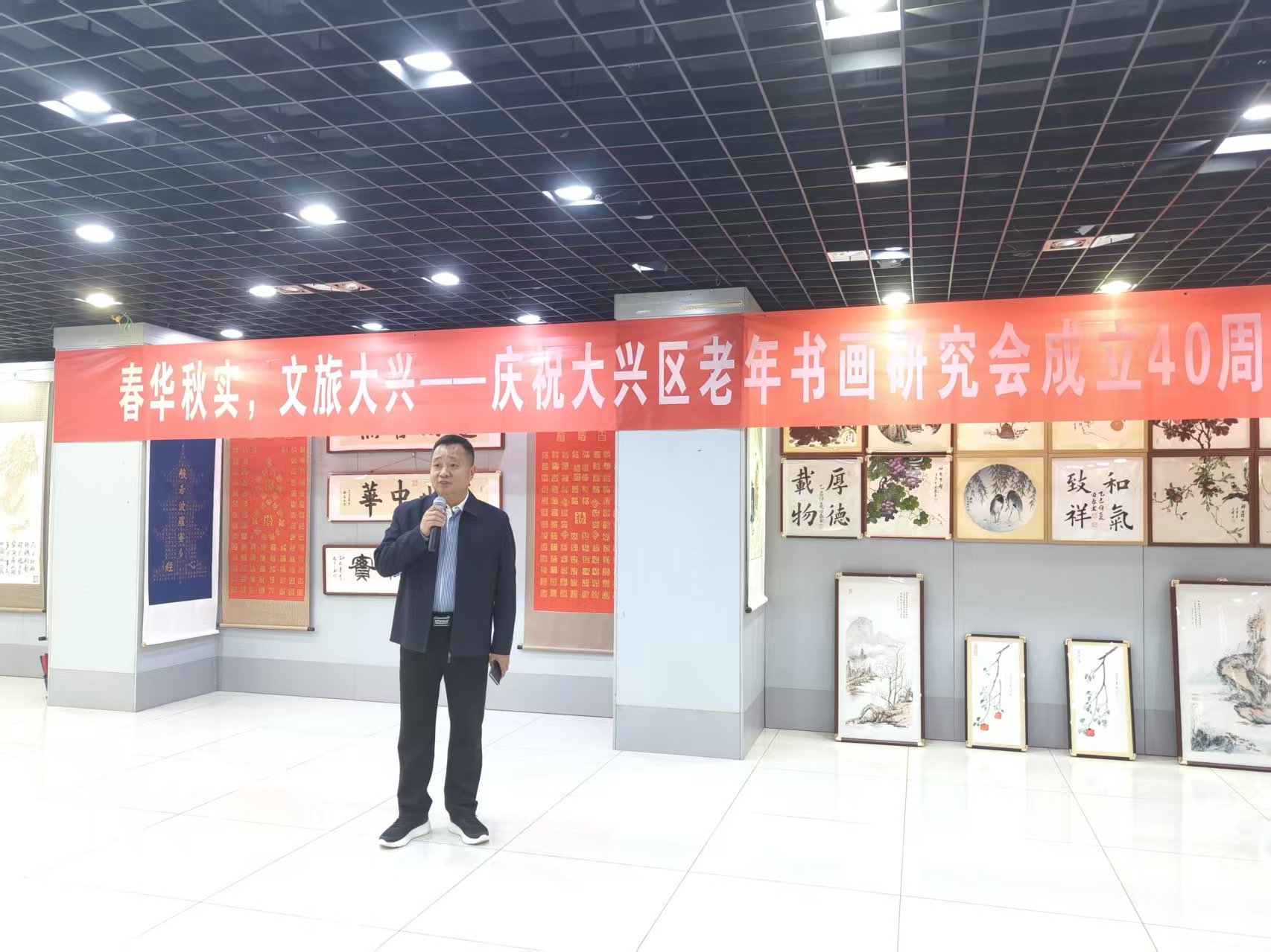 研究会名誉会长刘博如随后发表了深情洋溢的致辞。他回顾了研究会四十年来从初创到发展壮大的不平凡历程,向所有关心支持研究会发展的各级领导、社会各界以及默默耕耘的会员们表示衷心感谢。他表示,四十年春华秋实,研究会始终坚持“以书画会友,以笔墨传情”的宗旨,未来将继续带领全体会员,扎根传统,勇于创新,用手中的画笔描绘时代新貌,为大兴的文化建设添砖加瓦。