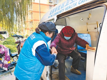 五里坨街道社区卫生服务中心为独居老人提供“上门接、全程陪、送回家”就医服务。
