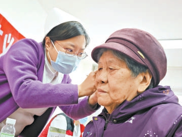 石景山区中医医院组织医疗团队走进福利院,为老年人进行健康检查。