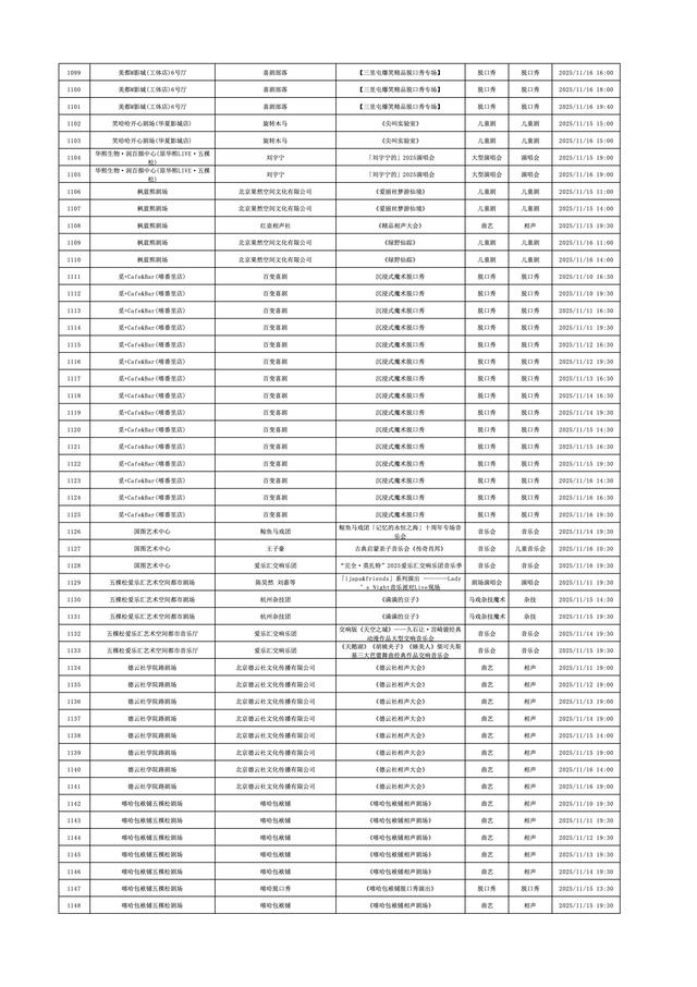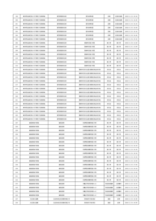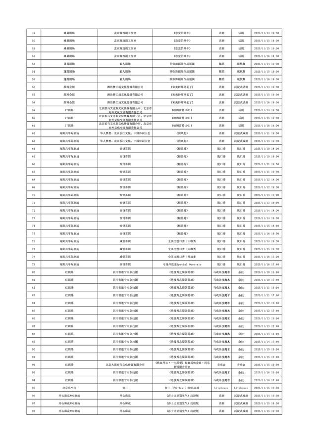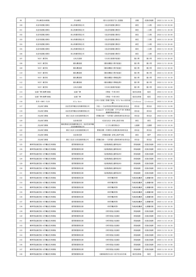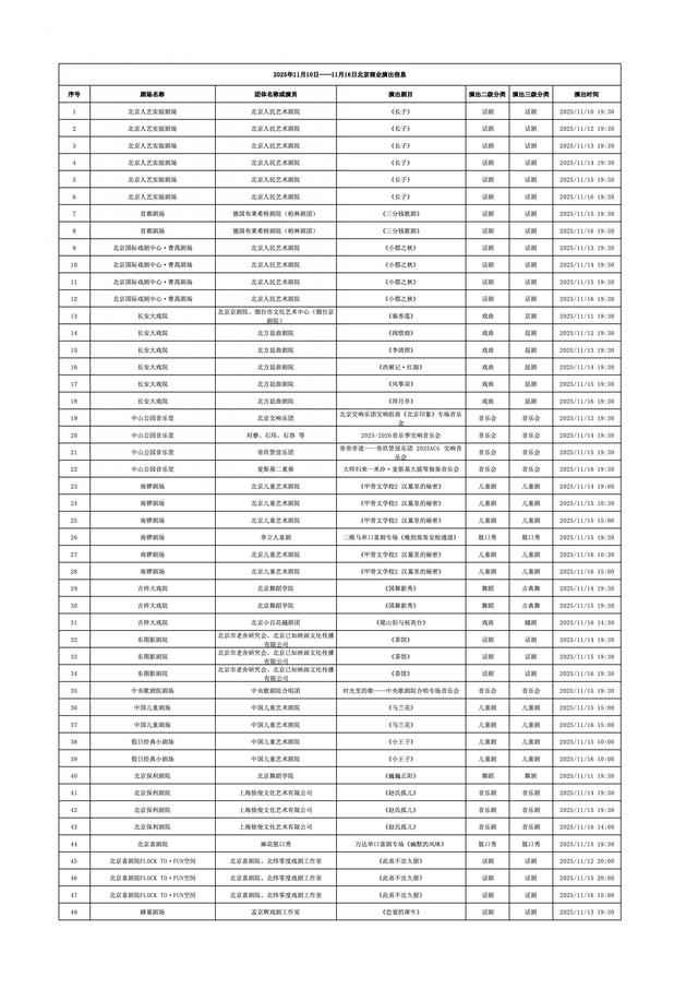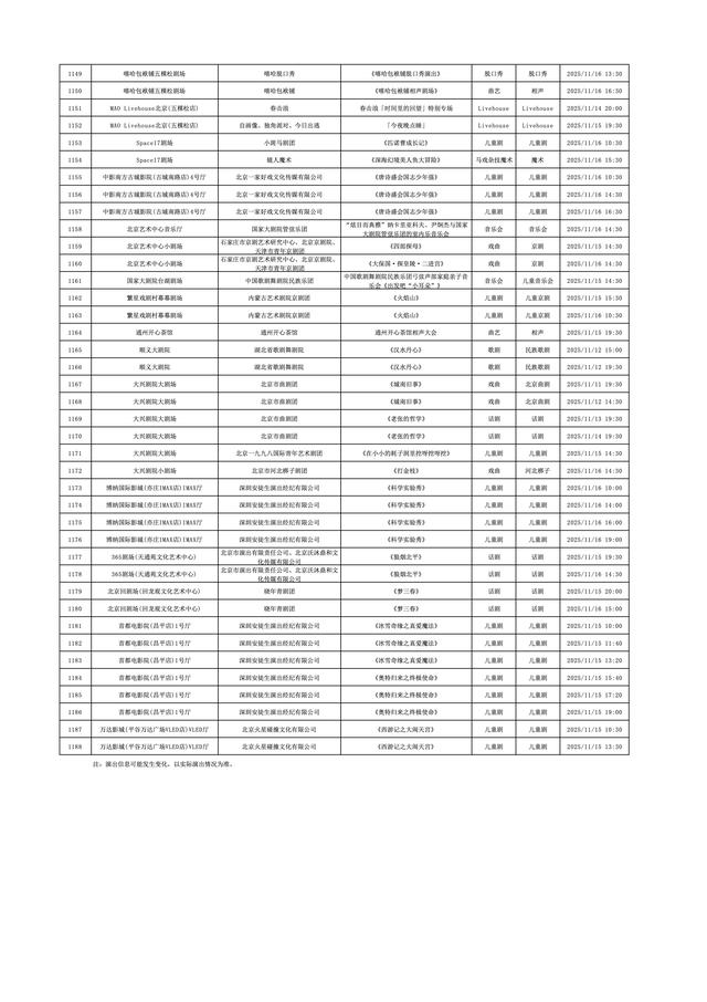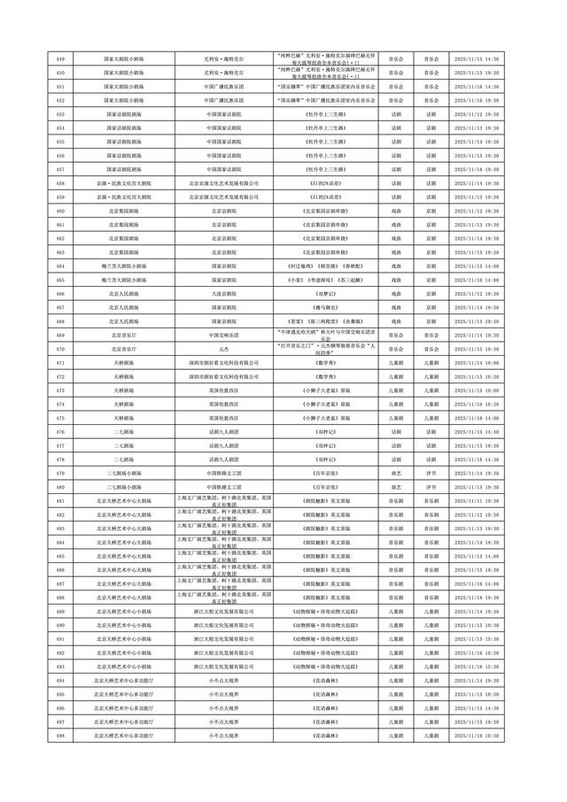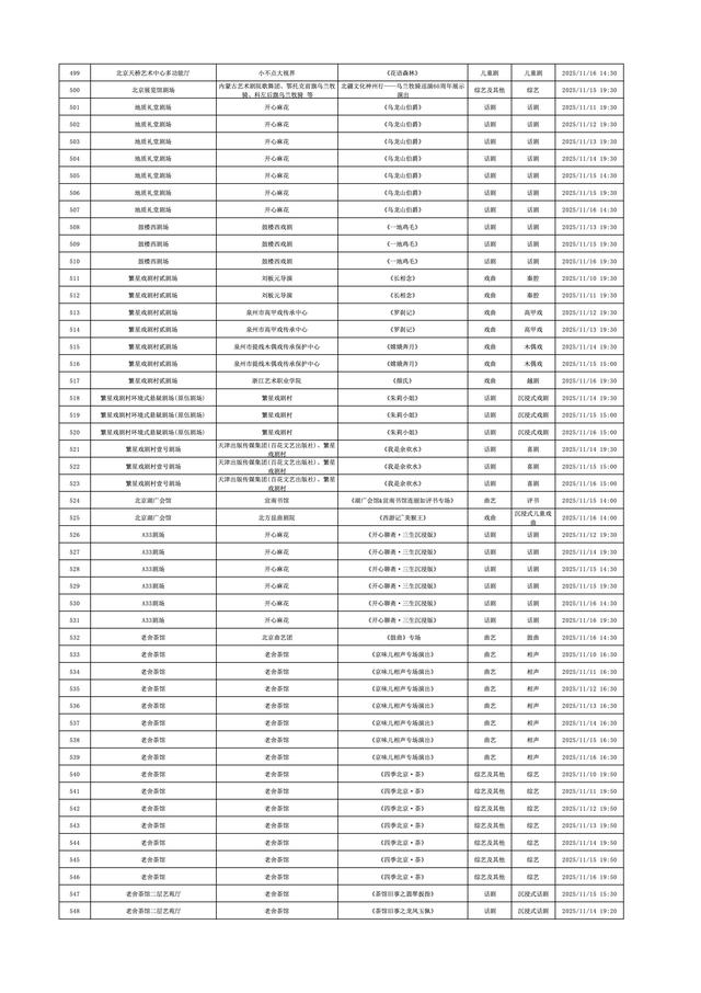2025年11月10日-2025年11月16日北京商业演出信息新鲜“出炉”!话剧、喜剧、京剧、昆曲、北京曲剧、音乐剧、儿童舞台剧、儿童亲子剧、儿童木偶剧、儿童音乐剧、儿童剧、儿童魔术剧、儿童杂技、沉浸式戏剧、沉浸式喜剧、音乐会、演唱会、Livehouse、芭蕾舞剧、相声、评书、鼓曲、曲艺、二人转、脱口秀、综艺、杂技等一大波精彩演出来了,你想看的全都有,安排起来!