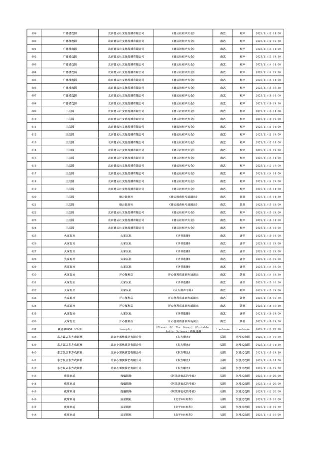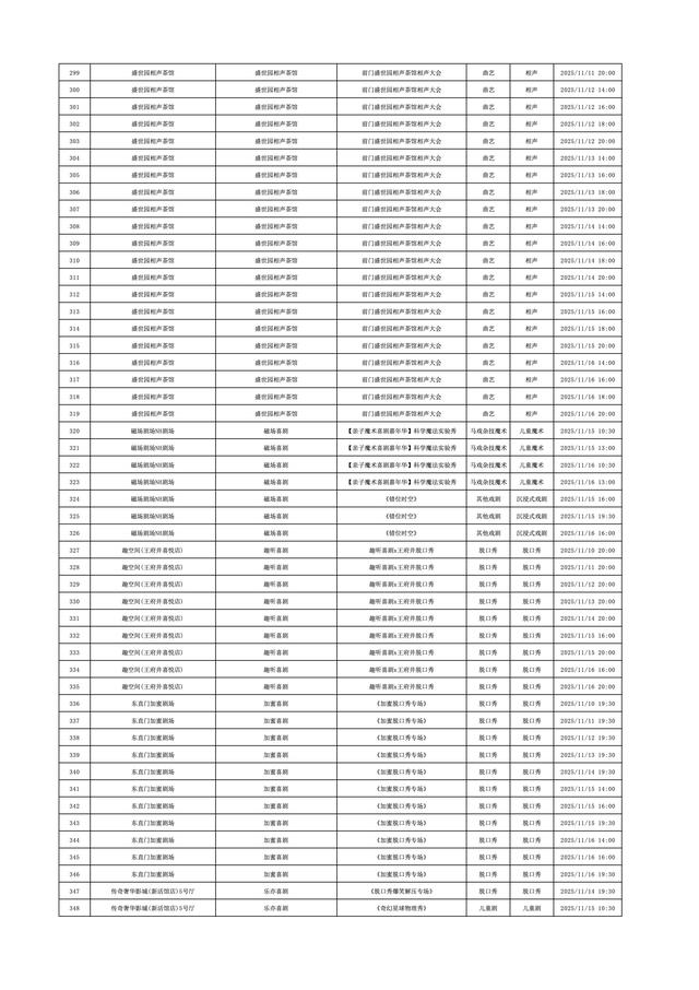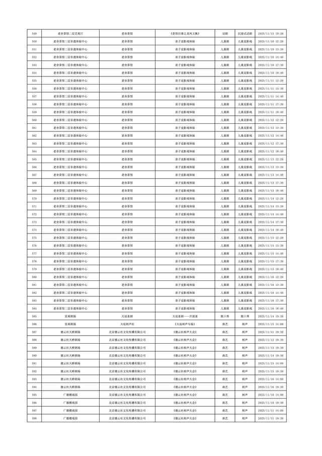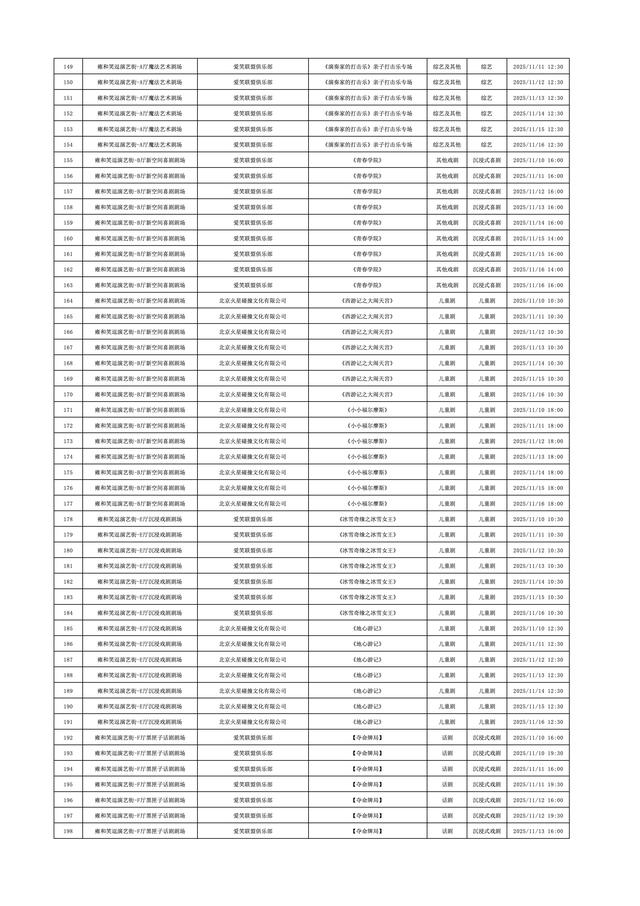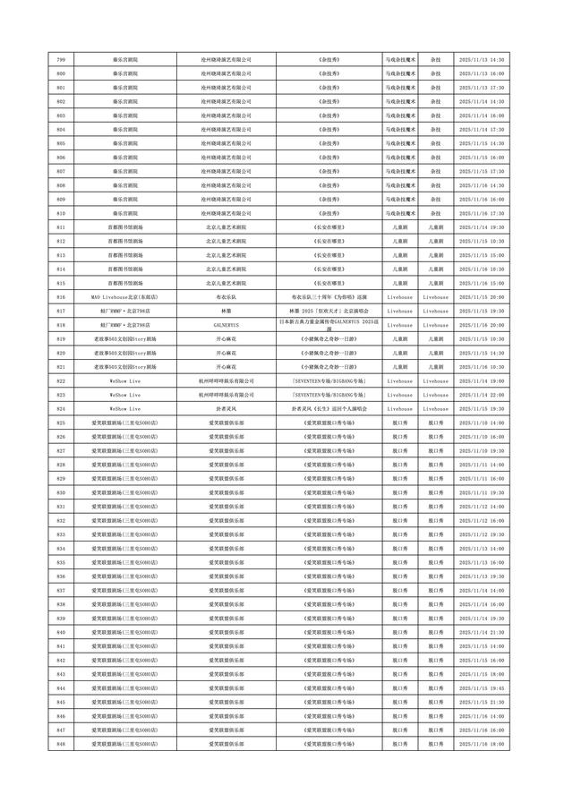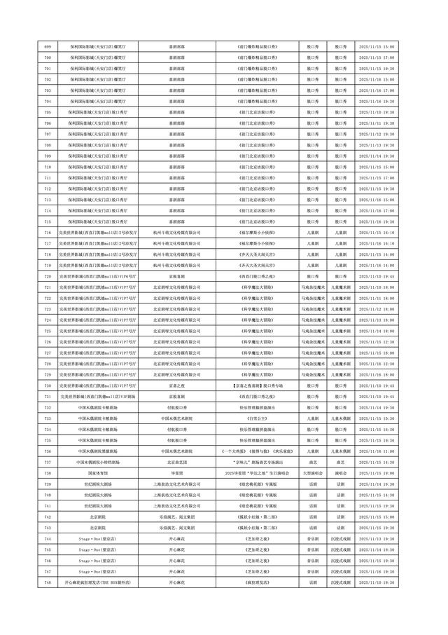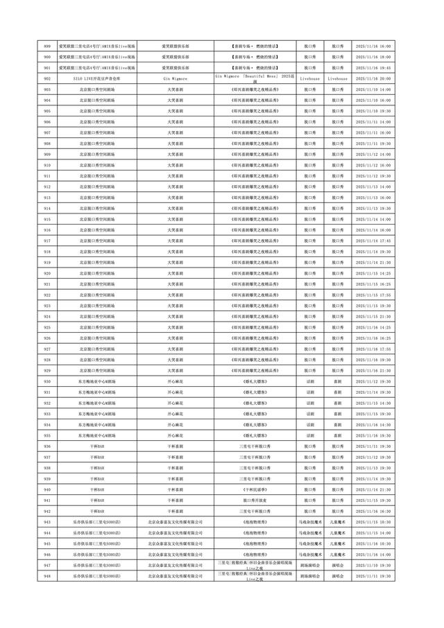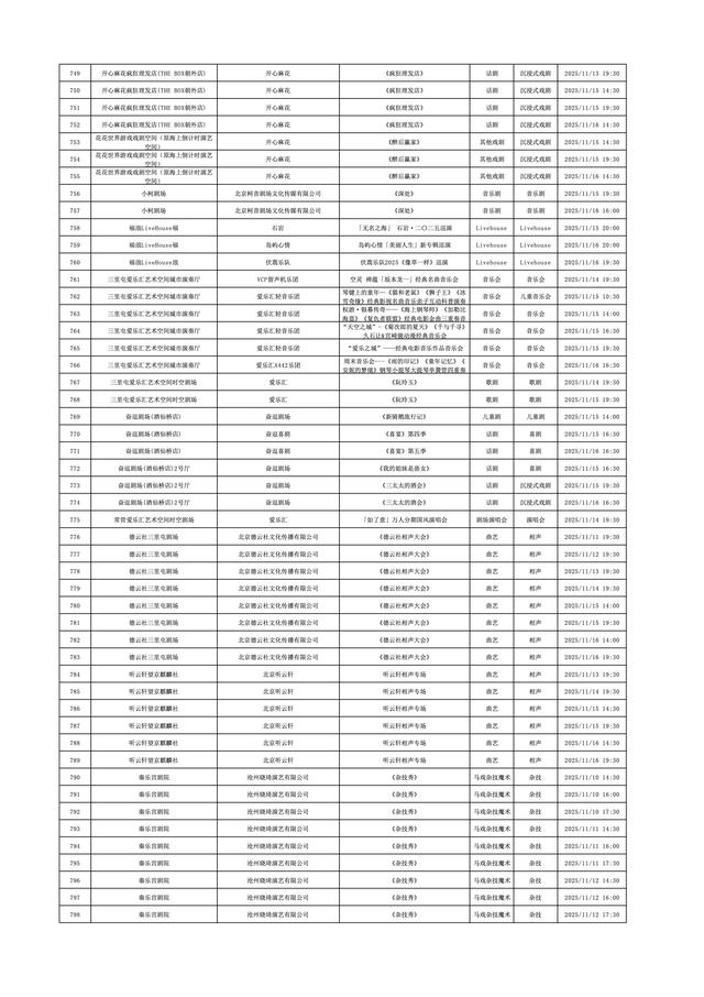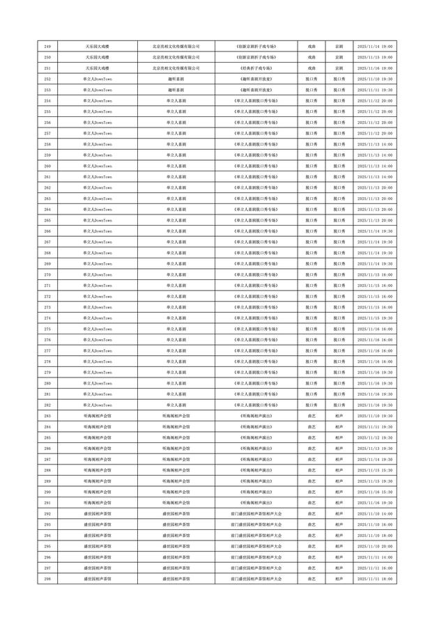 2025年11月10日-2025年11月16日北京商业演出信息新鲜“出炉”!话剧、喜剧、京剧、昆曲、北京曲剧、音乐剧、儿童舞台剧、儿童亲子剧、儿童木偶剧、儿童音乐剧、儿童剧、儿童魔术剧、儿童杂技、沉浸式戏剧、沉浸式喜剧、音乐会、演唱会、Livehouse、芭蕾舞剧、相声、评书、鼓曲、曲艺、二人转、脱口秀、综艺、杂技等一大波精彩演出来了,你想看的全都有,安排起来!
