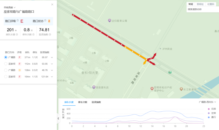 4.东西方向拥堵严重,而南北方向较为通畅,基本一次就能通过交叉口。