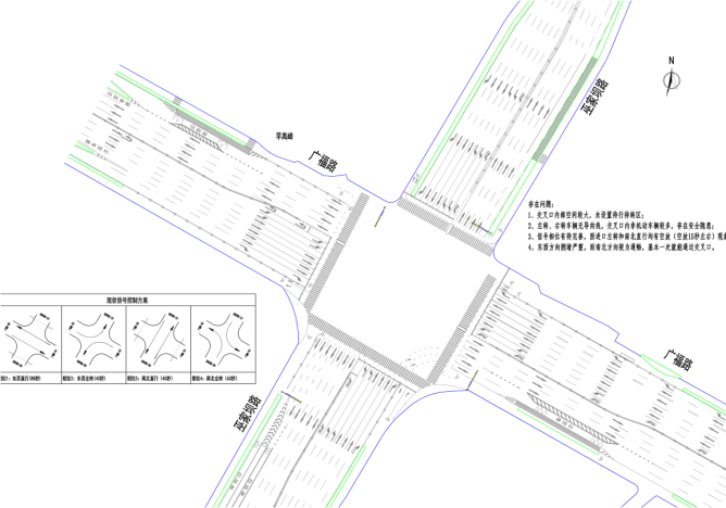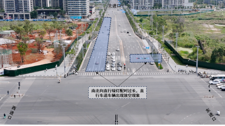 3.信号相位有待完善,西进口左转和南北直行均有空放现象。