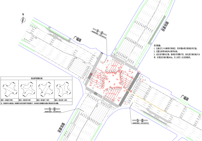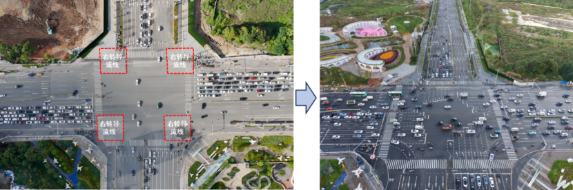 完善右转导流线设计,减少右转车辆与直行车辆之间的干扰,提高车辆通行效率。