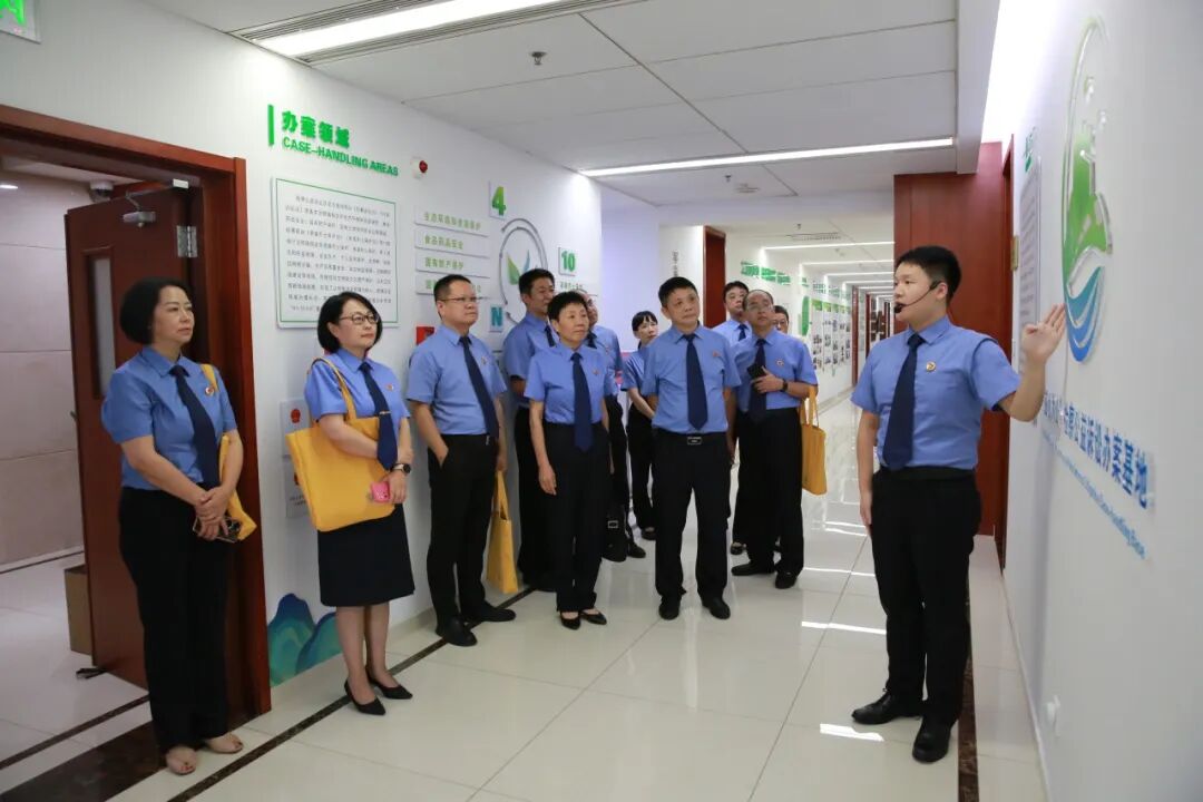 图为张亚峰在国家检察官学院现场教学活动中,为参训学员讲解市检四分院“益心为公”检察公益诉讼办案基地