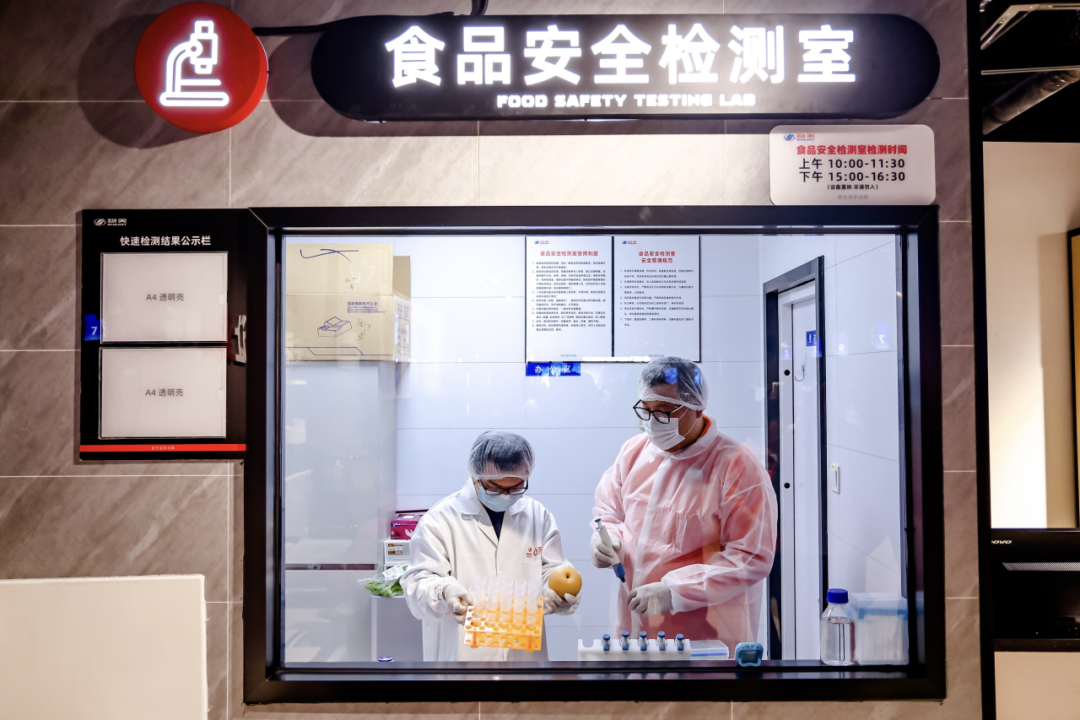 针对周边办公人群,店里开通了线上下单配送,不想出门也能吃到新鲜美食;AI出清系统和食品安全检测室也没落下,新鲜和安心双保障。