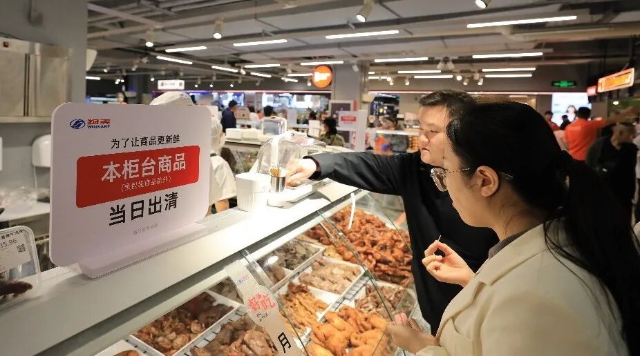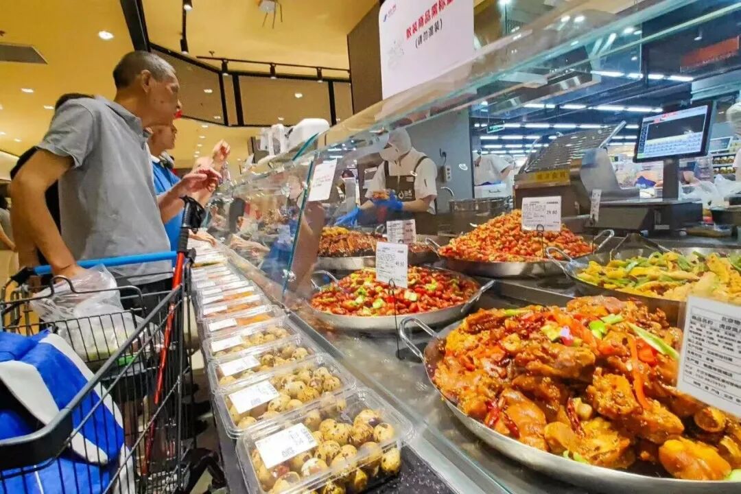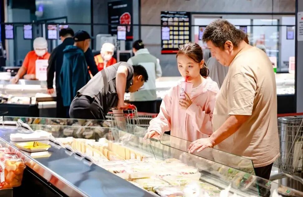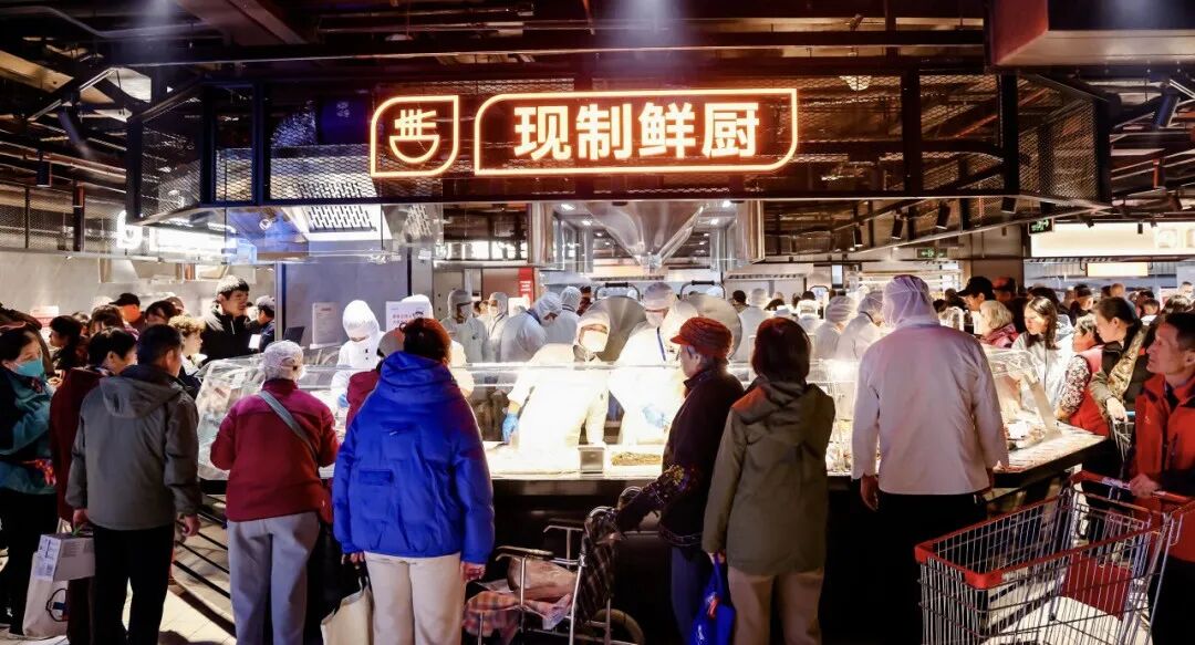 双井店更是将海鲜“鲜味厨房”直接搬进卖场——水产区提供梭子蟹、帝王蟹、罗氏虾等时令海鲜,消费者现捞现选后,门店可提供现场宰杀和去鳞去内脏等预处理服务,消费者还可按需选择白灼、椒盐、蒜蓉蒸等多种烹饪方式,立等可取,成为周边居民“鲜味直达”的晚餐新选。