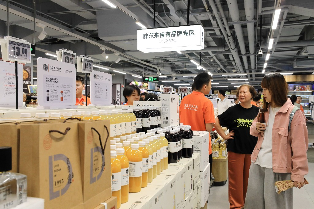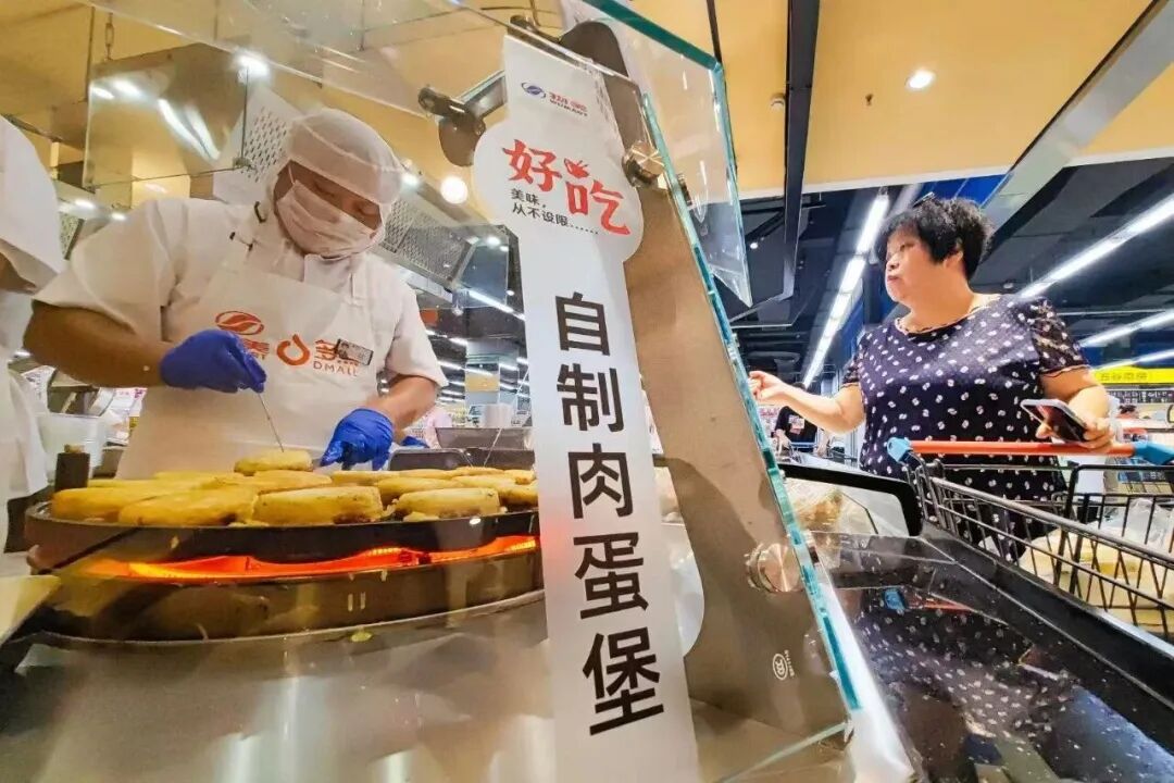 酒仙桥店营业面积约5000平方米,把“逛超市”变成了“逛吃派对”,商品焕新率达到70%,还专门开辟了“胖东来自有品牌专区”。