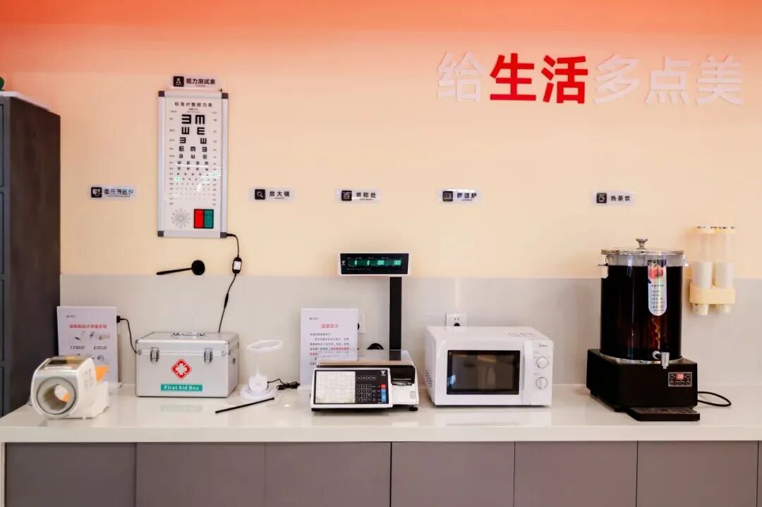 在服务体验上,各店便民暖心属性凸显,提供免费热茶、直饮水、微波炉、应急药箱、血压测量仪、非机动车充气及宠物寄存等便捷和包容性服务,方便周边居民日常出门或上下班顺路采买。