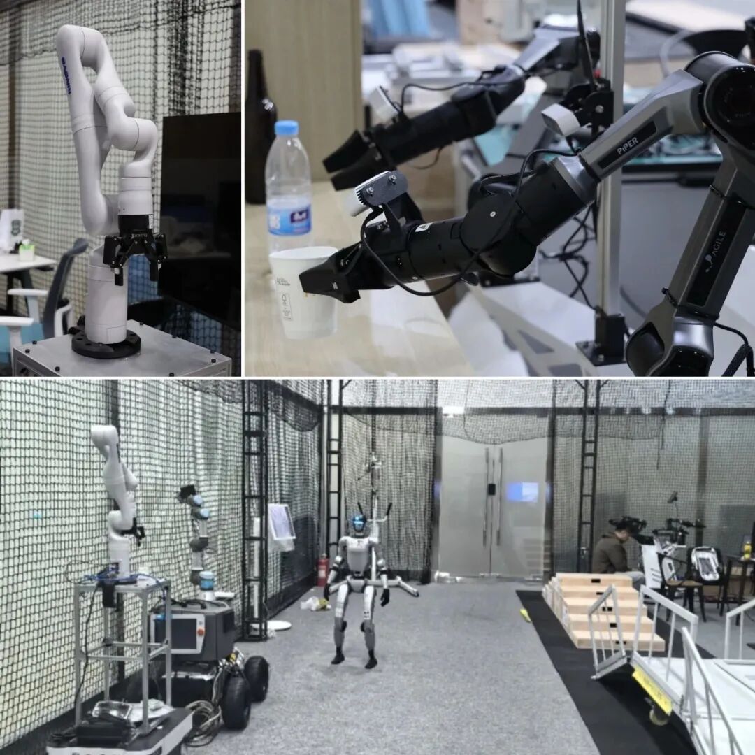 在位于华远·企业中心(北京)的具身机器人训练场——北京建筑大学科技园(华远园),人形、四足+臂、轮式+臂等机器人正进行自主移动导航与越障训练。这里是机器人的“学校”,也是推动机器人智能化、通用化发展的重要基础设施。