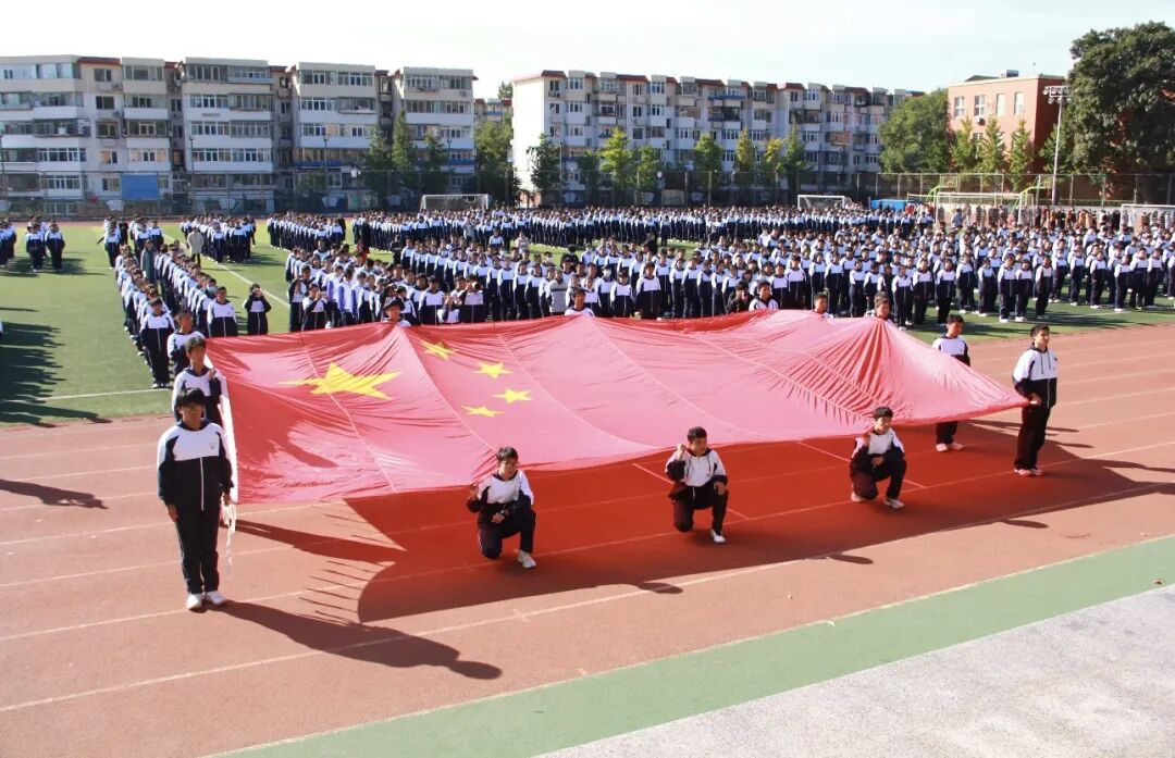 仪式在“九三阅兵”珍贵视频的回放中拉开序幕。直升机悬挂巨幅国旗飞越天安门广场的磅礴画面,瞬间将全场师生的思绪拉回那个庄严时刻,点燃了每个人心中的爱国激情。这面国旗不仅是采用特殊科技材质制成的实物,更是一部镌刻着中国人民捍卫和平坚定信念的“立体史书”。它正式“安家”九中,是学校最宝贵的红色资源,将成为激励全体师生赓续红色血脉、矢志报国强国的鲜活教材。