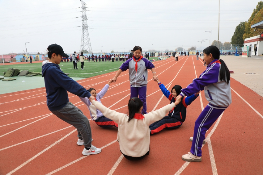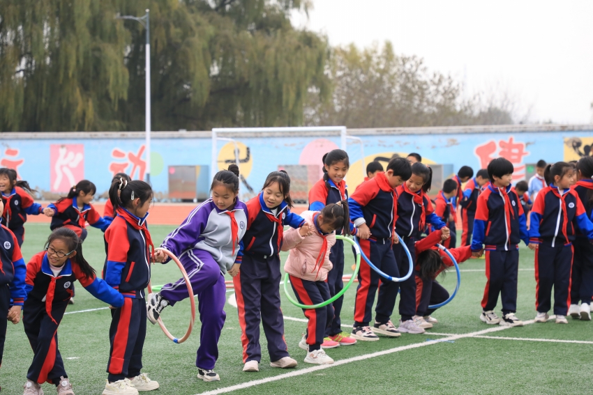 活动现场,平谷区山东庄中心小学一、二年级学生在篮球场开展趣味团体游戏,在欢笑中拉近同伴距离;三年级学生以“全员班赛”凝聚班级力量,强化团队归属;四年级男生专注武术练功,在招式练习中学会情绪管理,女生则通过身体瑜伽舒缓身心;五、六年级分别参与酣畅运动、互动游戏等项目,“同舟共济”“信任盲行”等特色活动让学生在协作中增强抗压能力与心理韧性。六年级学生赵浩喆一边擦汗一边说:“‘信任盲行’时被同伴稳稳牵着的感觉特别安心,和大家一起完成挑战后,我不仅不怕困难了,还懂得了互相配合的重要性!”他还兴奋地补充道:“原来运动不只是出汗,还能拉进同学之间的距离,现在我每天都盼着上体育课!”