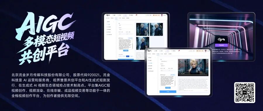 在 AIGC 重构内容生产逻辑的时代背景下,流金科技以 “视界慧景” 共创平台为核心载体,凭借文生视频等核心技术能力,在联合体中承担起数字演艺创新引擎的关键角色,推动产业从 “传统创作” 向 “智能智造” 跨越。