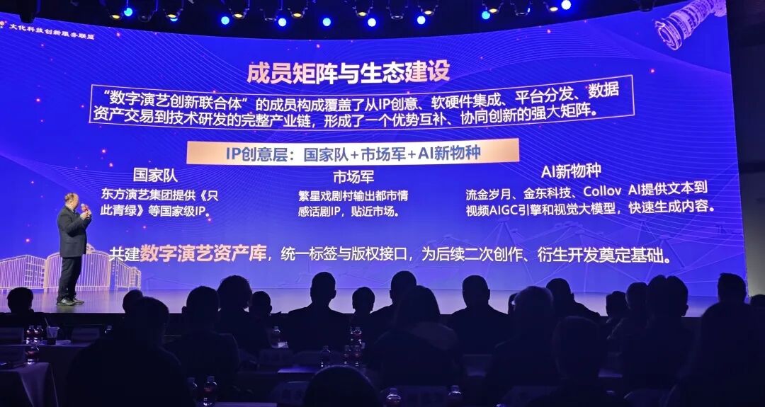 在数字演艺创新联合体的 “成员矩阵与生态建设” 中,已形成覆盖 IP 创意、软硬件集成、平台分发、数据资产交易到技术研发的完整产业链生态。其中 IP 创意层构建了 “国家队 + 市场军 + AI 新物种” 的协同格局。