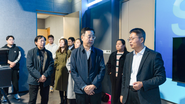11月11日,调研组首站抵达山东师范大学,学校党委常委、宣传部部长于晓明,党委宣传部副部长裴金宝、连菁菁,新闻与传媒学院副院长邢金虎等给予热情接待并座谈交流。调研期间,调研组首先参观了山东师范大学办学成就展览馆,系统了解其办学历史积淀、学科发展脉络与核心办学成就;随后实地考察了融媒体中心组织架构设置、全媒体平台运营模式及内容生产全流程,近距离观摩其在资源整合、技术应用等方面的亮点做法。