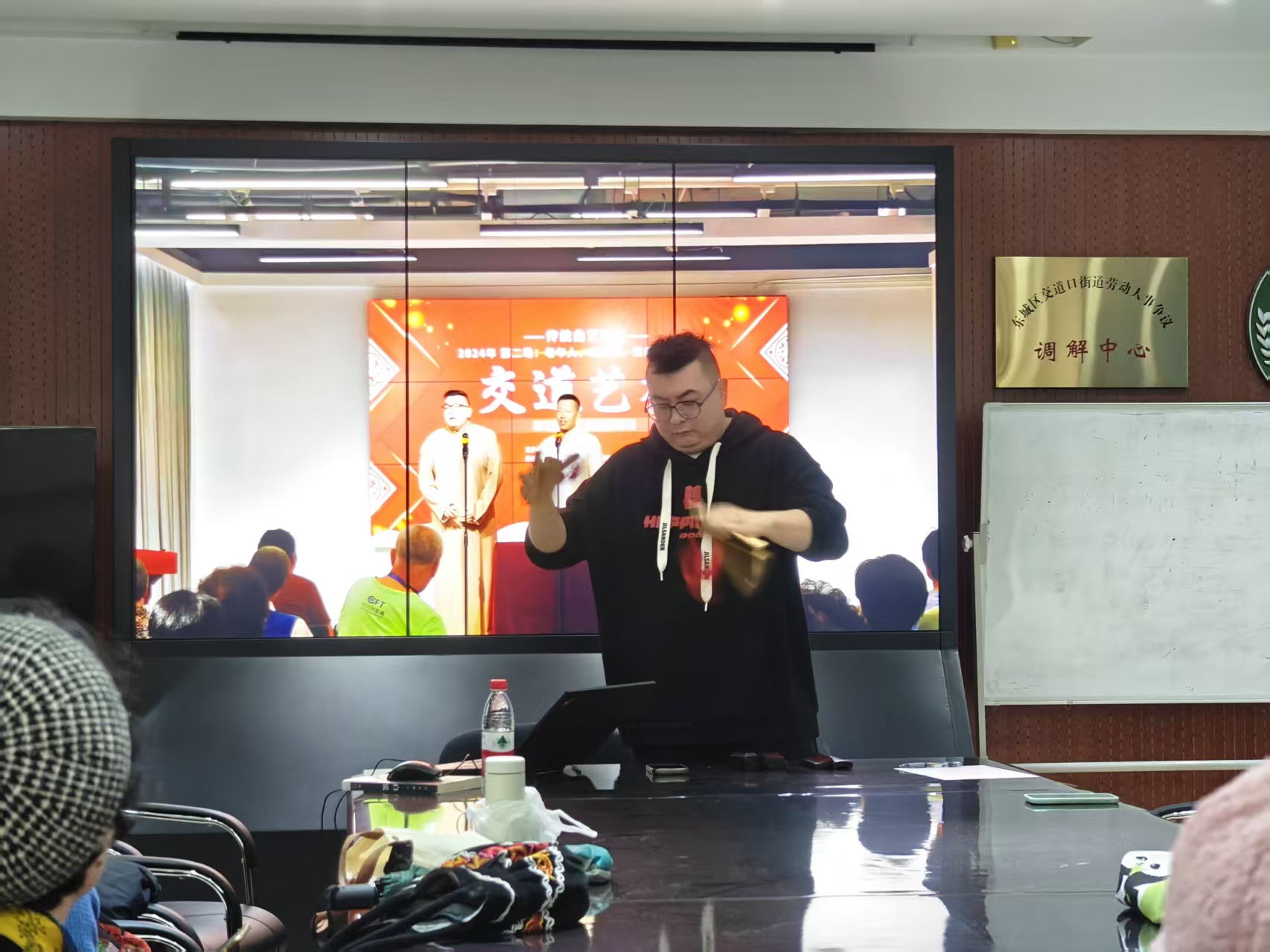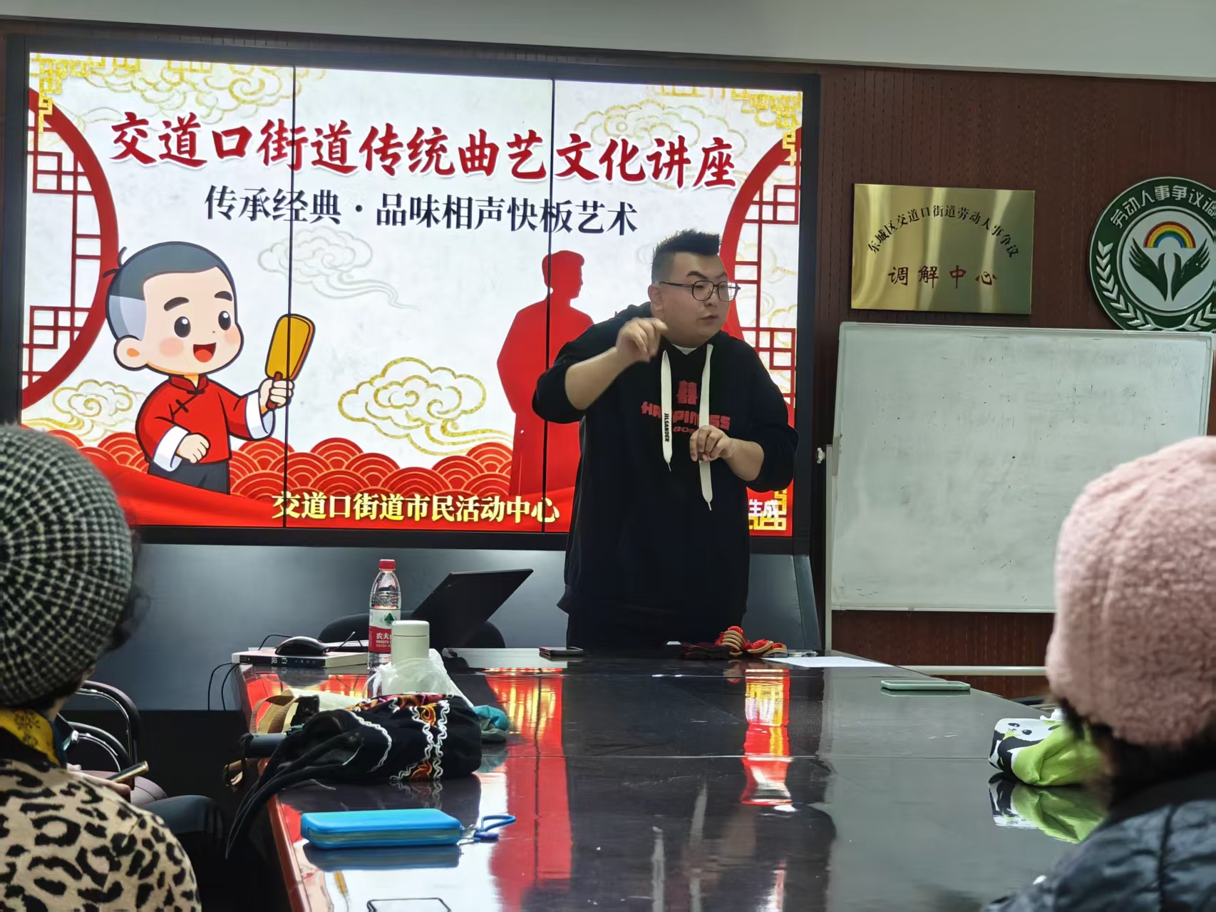 11月7日下午,一阵阵清脆的快板声和欢声笑语从交道口街道市民活动中心传出。为弘扬国粹艺术,丰富居民精神文化生活,中心特邀青年相声演员张嘉桐成功举办了一场题为“传承经典·品味相声快板艺术”的传统文化讲座,为辖区居民带来了一场精彩纷呈的相声快板艺术赏析会。