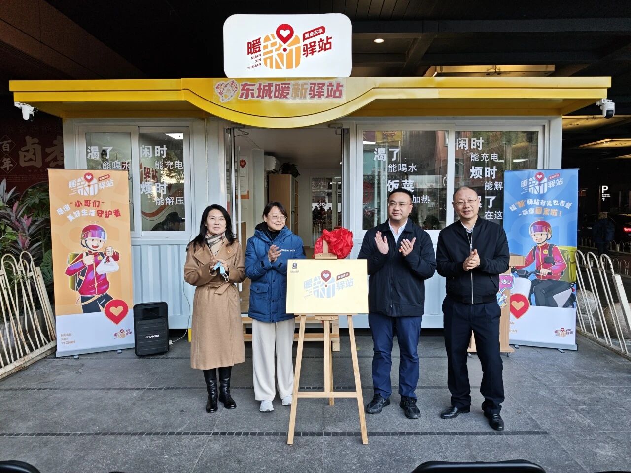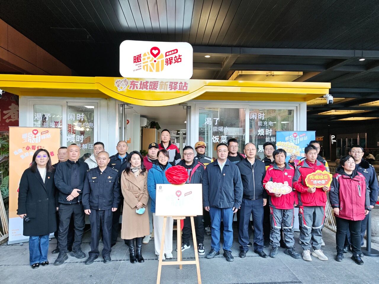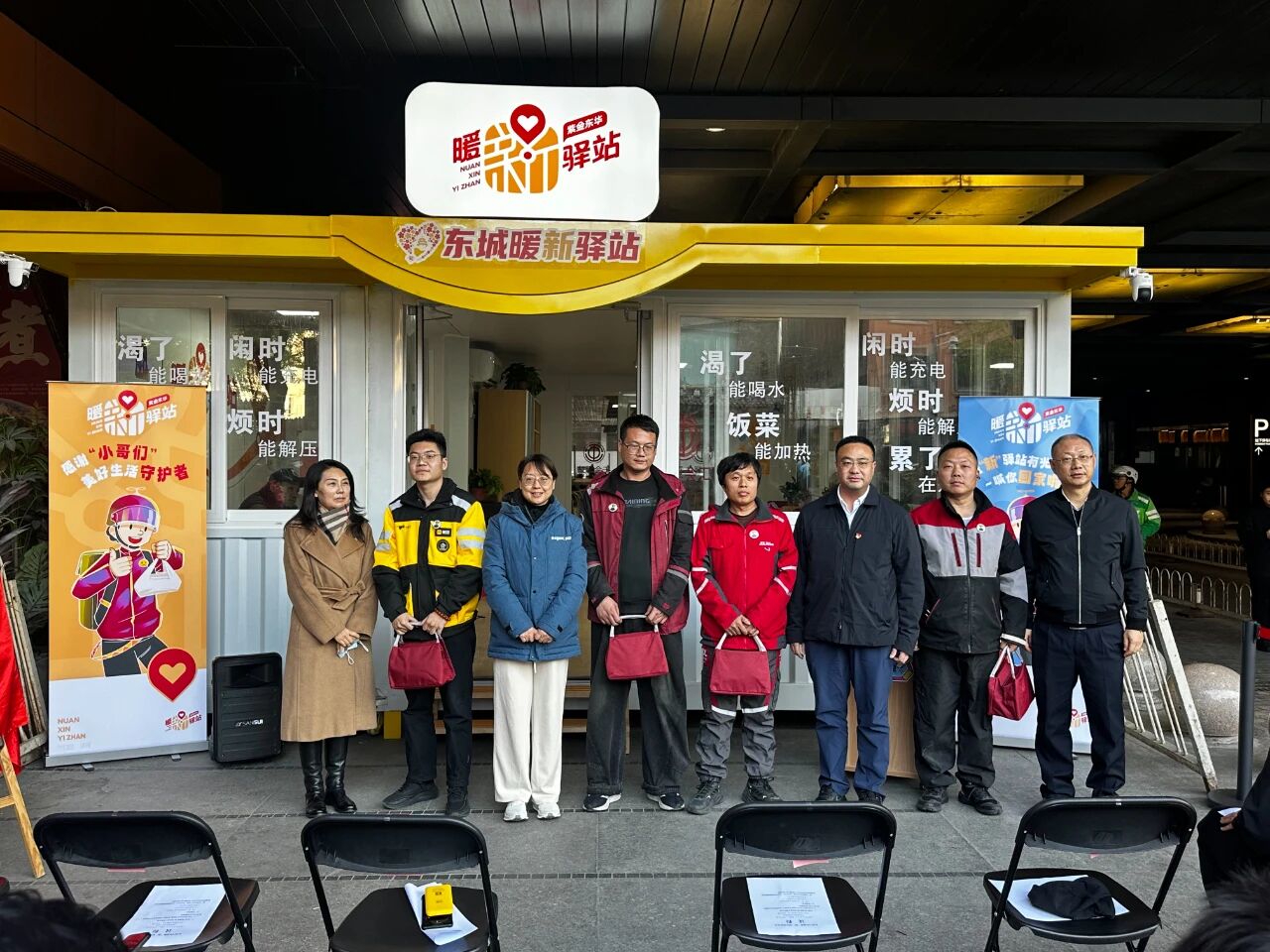 在大家的共同见证下,王府井地区管理委员会、东城区总工会、东城区委社会工作部及街道领导共同为东华门街道暖“新”驿站揭牌。驿站将为新就业群体朋友们提供一个安全、舒心、便捷的专属友好场所,让友好的温度成为王府井商圈的鲜明底色。