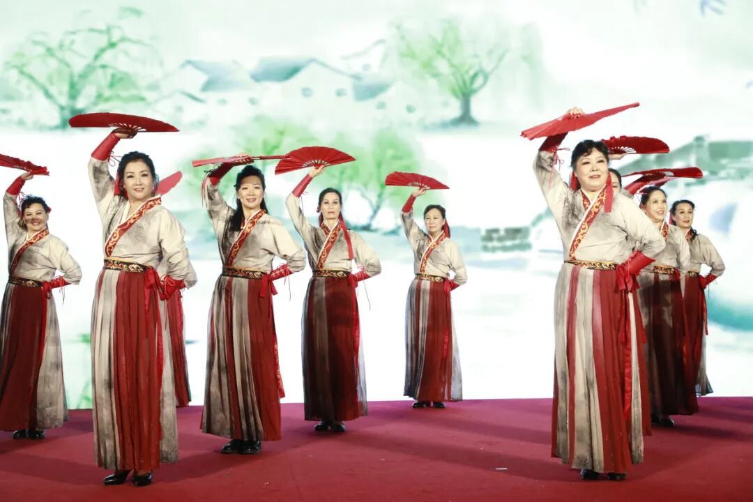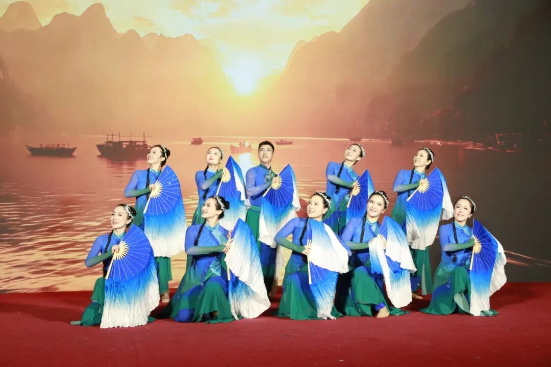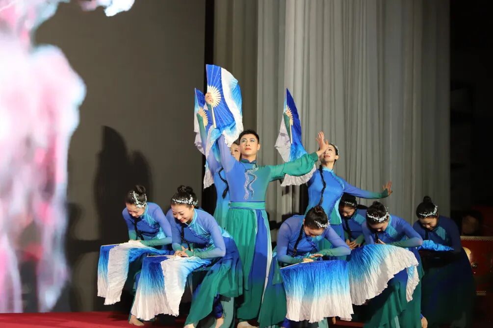 刘佳舞蹈团带来的舞蹈《河韵长歌》,舞者们随韵而动,以柔美身姿演绎流水意境,织就一幅流动的舞台水墨画