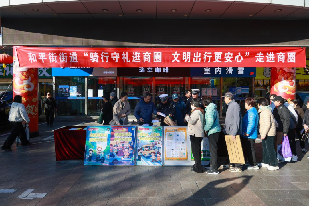 商圈集中宣传:平安建设办公室联合东外交通大队在天丰利广场开展“骑行守礼逛商圈 文明出行更安心”主题宣传活动,为现场百余名群众开展交规政策讲解、发放宣传册,倡导安全文明出行。
