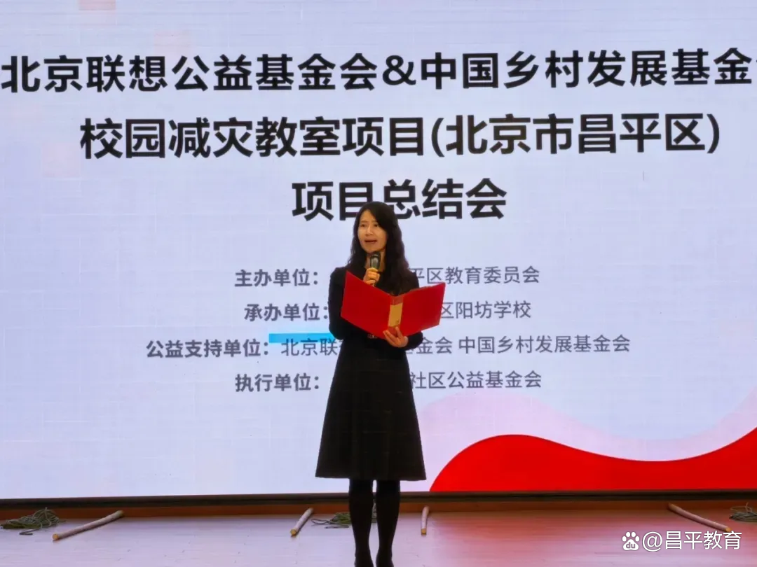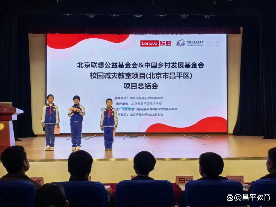 11月13日,由北京市昌平区教育委员会主办,北京联想公益基金会与中国乡村发展基金会联合发起、北京齐化社区公益基金会执行的“校园减灾教室项目(北京市昌平区)项目总结会”在昌平区阳坊学校顺利举行。来自昌平区教委、捐赠方、公益支持单位、项目学校师生代表及特邀专家齐聚一堂,共同回顾项目成果,交流减灾教育经验,表彰优秀教师、先进个人及小小减灾官。