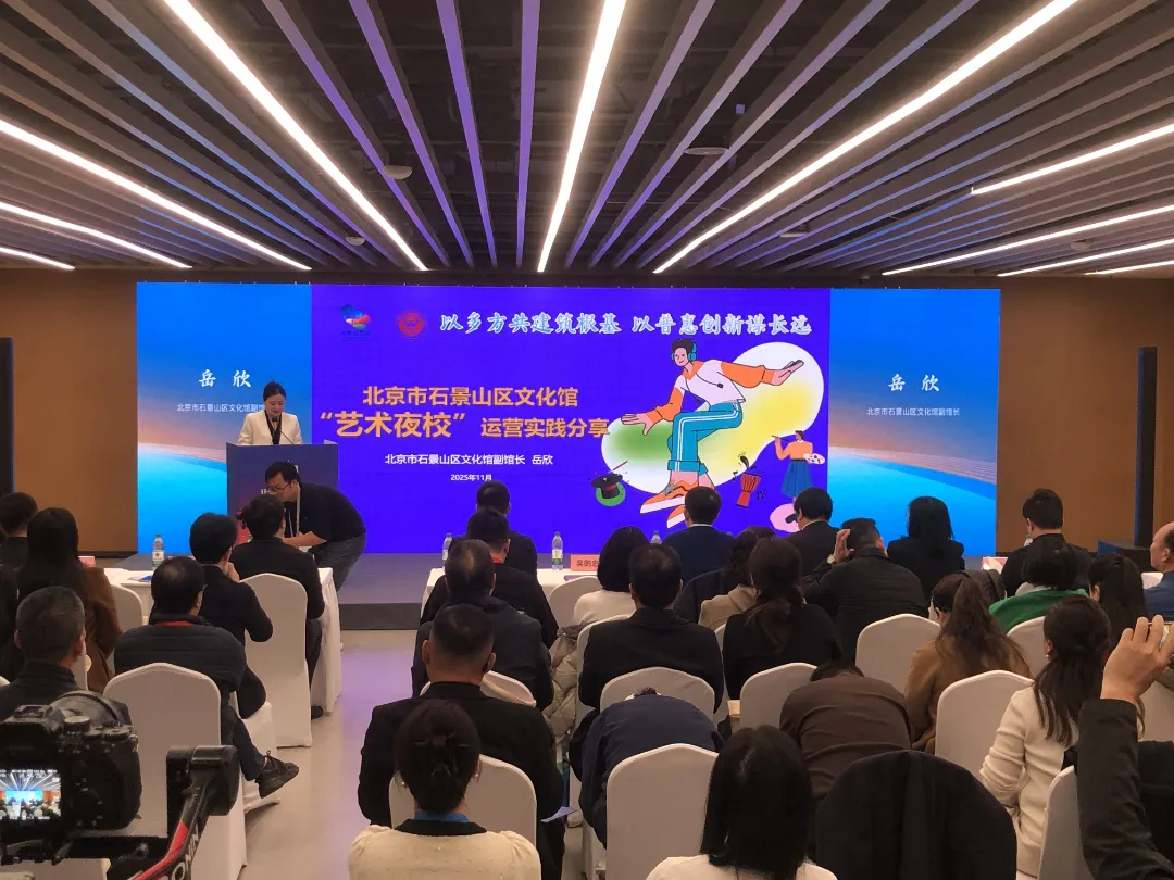 11月13日,在“让艺术点亮生活:‘市民艺术夜校’的拓展与深化”专题交流中,石景山区文化馆副馆长岳欣,以《以多方共建筑根基 以普惠创新谋长远》为题作主旨发言,将文化馆艺术夜校的“石景山经验”推向全国同行。