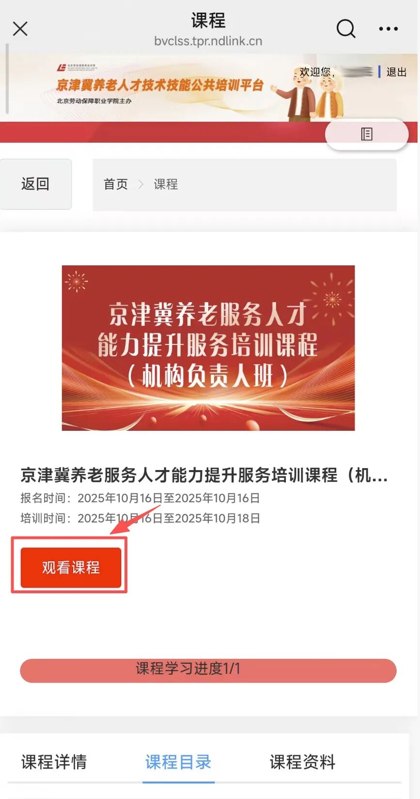 (3)养老护理员班:https://bvclss.tpr.ndlink.cn/course?termId=676b7e2556216b9fd5bc857f&courseId=68f05e3256216bf458f4e286&courseTaskId&courseClassId=68f05cef56216bf458f4c884&taskStageId
