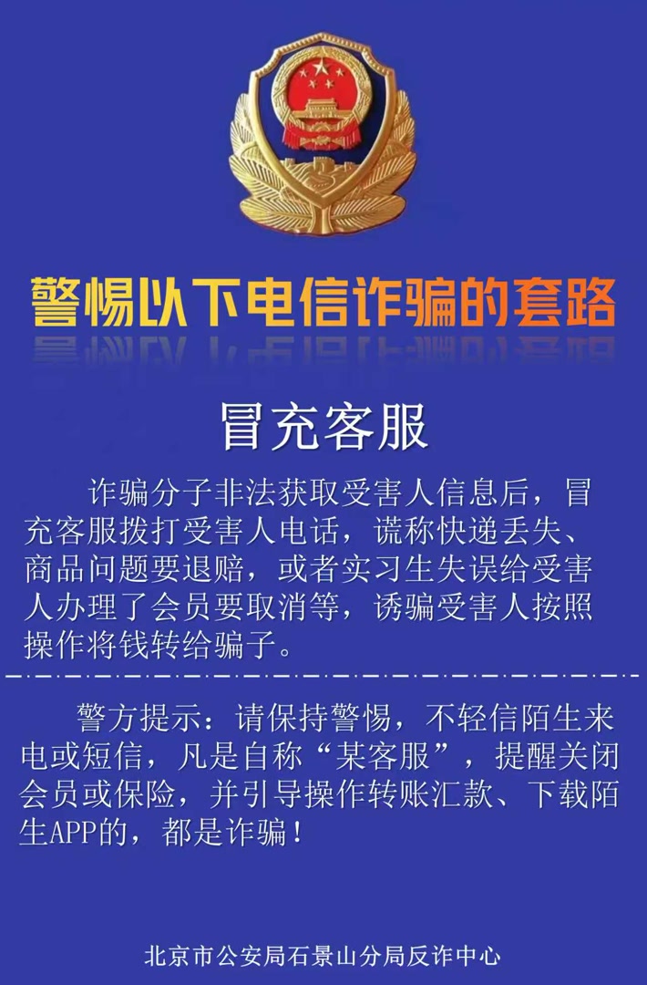 请保持警惕,不轻信陌生来电或短信,凡是自称“某客服”,提醒关闭会员或保险,并引导操作转账汇款、下载陌生APP的,都是诈骗!