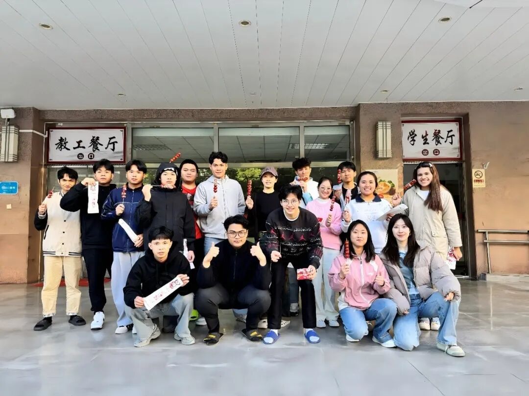 在熬糖环节,食堂老师耐心讲解技巧后,留学生们手持串好的果串,小心翼翼地蘸取糖浆。待糖衣在托盘中缓缓凝固,一串串劳职院特色的糖葫芦便制作完成了。“酸甜在口中化开,不仅是美食的滋味,更是自己动手带来的快乐。”同学们纷纷感慨,在亲手制作的过程中领悟了“匠心”的独特内涵。