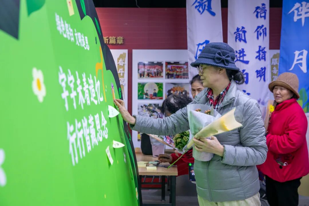 值得一提的是,当天的文明实践活动还设置了“追思寄语墙”与鲜花领取台。在创新环节“AI复活老照片”环节,活动志愿者借助AI技术为居民提供“老照片动起来”体验服务。现场,不少居民手持纸笔,将对逝者的思念化作深情寄语张贴在展板上;还有居民领取鲜花后,准备进行文明祭扫寄托思念。