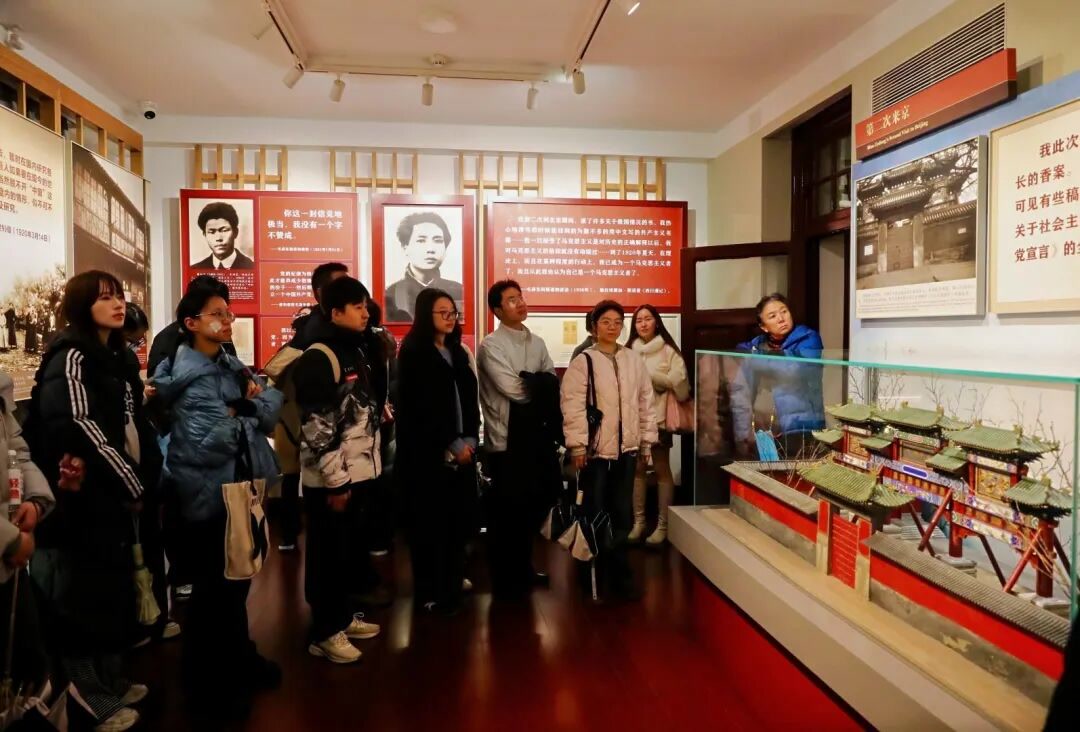 在专业讲解员引导下,同学们怀着崇敬的心情走进这座见证中国共产党孕育历程的红色地标。千余件珍贵文物中,《新青年》原件、早期革命文献等实物史料,生动再现了革命先驱追求真理、敢为人先的精神风貌,让同学们受到深刻的思想洗礼。