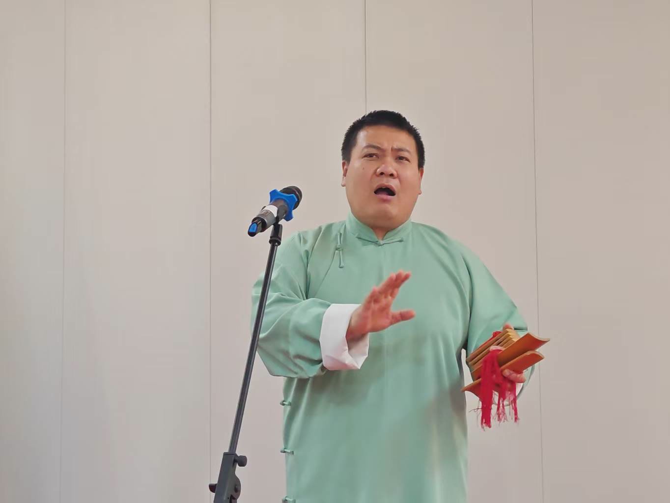 在主持人陶俞汐的串联引导下,整场演出有序推进。马星野表演的快板《手机十三辙》,将日常通讯工具的使用融入传统辙韵,节奏鲜明、语言贴近现实,引发不少职工共鸣。李娜带来的京韵大鼓《丑末寅初》,以沉稳的唱腔和细腻的情感处理,再现了传统曲艺的韵律美,获得观众多次掌声。郭磊与连旭合作的双簧《逗您乐》,依托面部表情与肢体语言的巧妙反差,制造出连贯的喜剧效果,现场笑声此起彼伏。张硕演绎的评书《桃花庄》,通过跌宕起伏的叙事和生动的人物刻画,牢牢吸引听众注意力,展现出说书艺术的感染力。杨佳东与张思宇演出的相声《舞台轶事》,以行业内部趣闻为素材,通过语言节奏的变化和情景再现,不断调动观众情绪,成为整场演出的亮点之一。