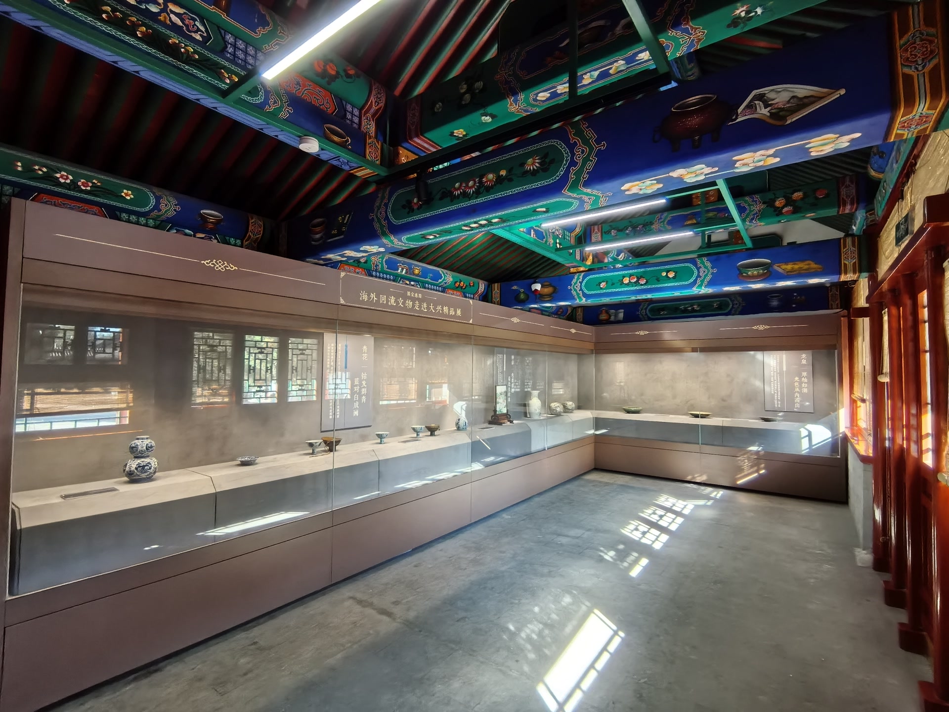 行至二宫门内,“云岫”假山依旧嶙峋,却在新的景观布局中焕发出别样意趣。经过细致的修缮,中轴庭院内原本裸露的土地和草坪代之方砖墁地,更符合行宫的历史原貌。人们行走活动的区域无形也扩大了不少。穿过假山的曲径,光影在石间流转,忽明忽暗间,竟生出“云出岫间”的朦胧之美。璇源堂静静矗立,作为昔日“团河八景”之首,这座面阔七间的殿宇在秋阳下更显庄重。修缮后的檐角翘首欲飞,彩绘的斗拱流光溢彩,朱红的立柱笔直挺拔,仿佛仍在诉说着当年乾隆帝“居园理政”的威严。殿内的专题展览已全新升级,由原来的燕京八绝改成了“海外回流文物走进大兴精品展”,更加凸显大兴本土特色和风貌。
