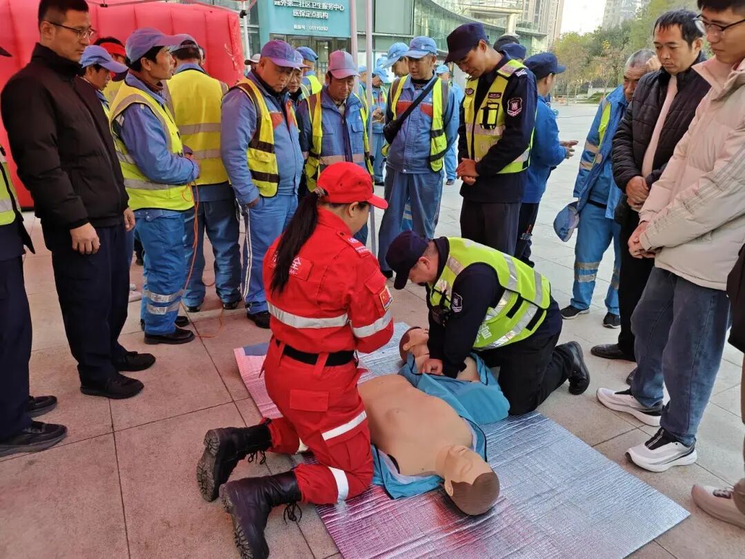 现场同步开展灭火器使用、消防结绳教学等技能演练,在专业教官指导下操作使用干粉灭火器扑灭模拟火源,熟悉心肺复苏动作要领。