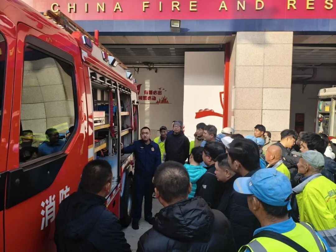 在装备展示区,消防教官详细讲解执勤车辆、消防器材装备名称、功能,并对灭火防护服、化学防护服、液压破拆工具组等应急救援专业器材设备进行现场操作演示,同时指导培训人员实际上手操作,强化学习体验效果。