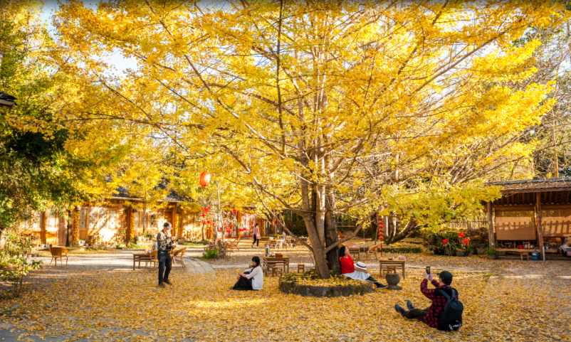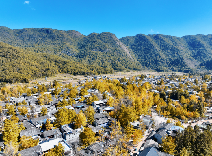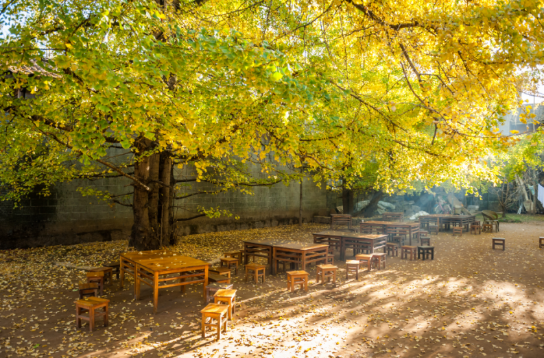 人和银杏树共享村落
