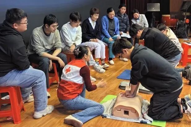 截止11月,在北京市海淀区红十字会的大力支持下,学校于两校区系统组织了8期共10场专项培训。培训精准涵盖医务人员、体育教师、一线授课教师、后勤职工及在校学生等各类群体,累计800余人,实现了师生类型全覆盖、各个楼宇全覆盖、在岗时间全覆盖。