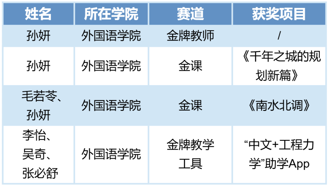 孙妍(左一)、毛若苓(左三)荣获“金课”奖项