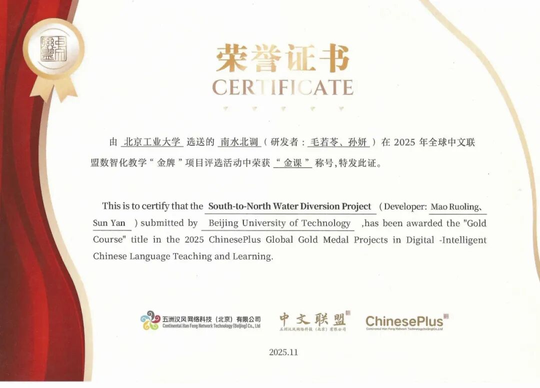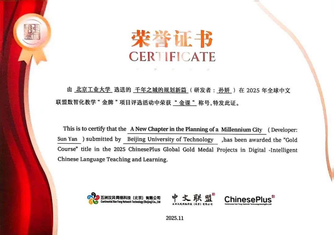 本次全球中文联盟数智化教学金牌项目评选,学校高度重视、认真组织,将其作为锻炼提升教师国际视野和综合能力的难得契机,积极选派优秀教师参与,并最终取得优秀成绩。北工大始终坚持课程育人与实践育人协同,依托在建的全国“中外青少年社会实践活动基地”积极打造优质国情课程,帮助中外青少年、国际留学生在课程学习和社会实践中体验中国、感知中国、理解中国,让“讲好中国故事”“传播中国声音”在高校汉语教学一线形成生动实践。未来,学校将进一步发挥学科优势,传播中华文化,以数智化技术赋能中文教育,为推动文明交流互鉴贡献北工大力量。