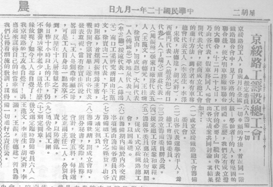 1921年12月,何孟雄在深入南口等地调查的基础上,撰写了《京绥路六日游记》,其中指出工人的“胜利之母在联合”,呼吁列位工友“拿出良心热血来组织团体”,这成为指导昌平早期工运的重要红色文献。