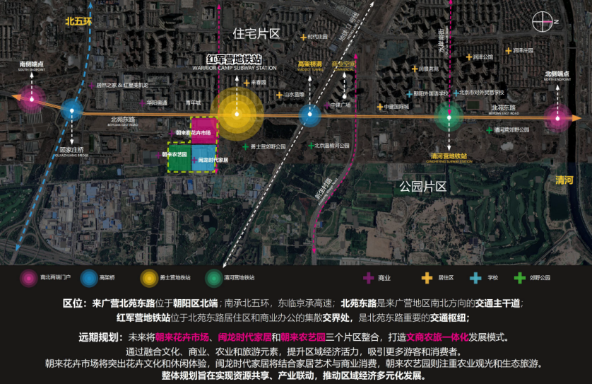 3.全局显效能:优化资源配置。以“站点—公园—商圈”联动为核心,强化红军营站与周边优质资源的有效衔接,推动站点与片区一体化联动更新。优化区域空间资源配置,更好适配经济社会发展与群众美好生活需求。