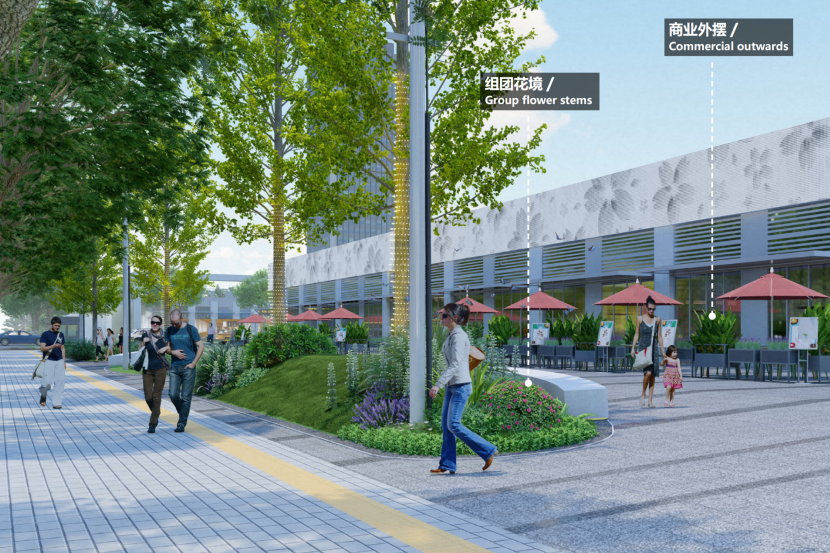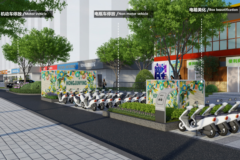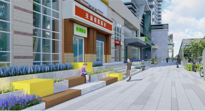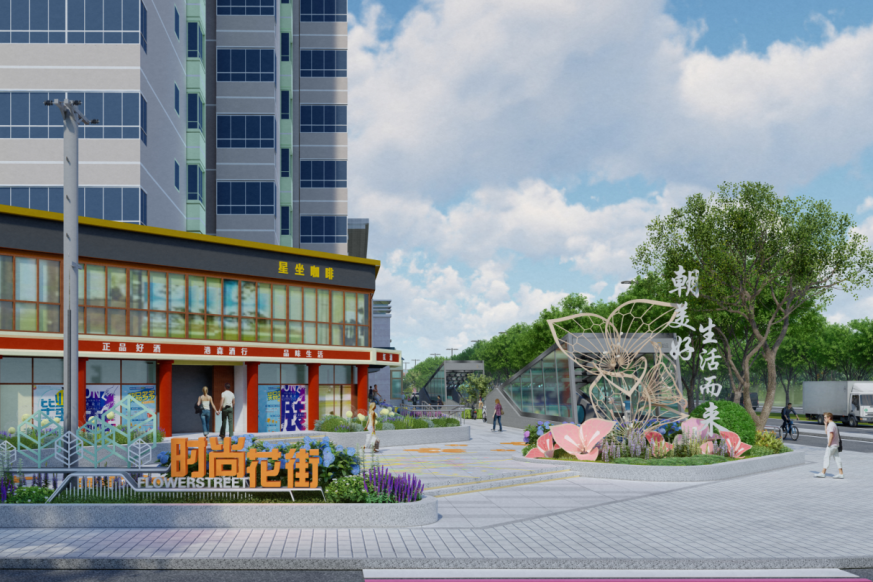 1.空间微改焕新烟火,夯实宜居基础。以“小而美”微改造活化空间,用彩色斑马线串联视觉动线,通过模块化花箱科学划分非机动车停放区、步行区及规范商业外摆区,搭配花语标识系统引导人流。既提升通行效率与环境舒适度,又保留生活本真,让日常出行更具质感。