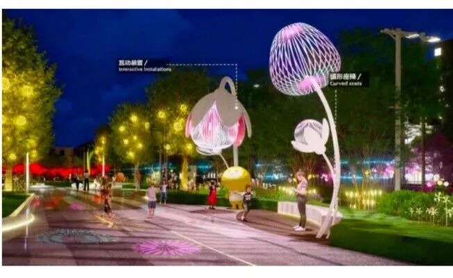 1.集约拓空间:打通联动脉络。在开敞空间设置花箱座椅、打造花卉主题景观,增设花语标识引导动线,优化夜间照明系统,建成“流光花街”“万象花屿”“栖野花墟”等主题步道。有效打通红军营站与朝来花卉市场、勇士营郊野公园的联通路径,实现空间集约高效利用。
