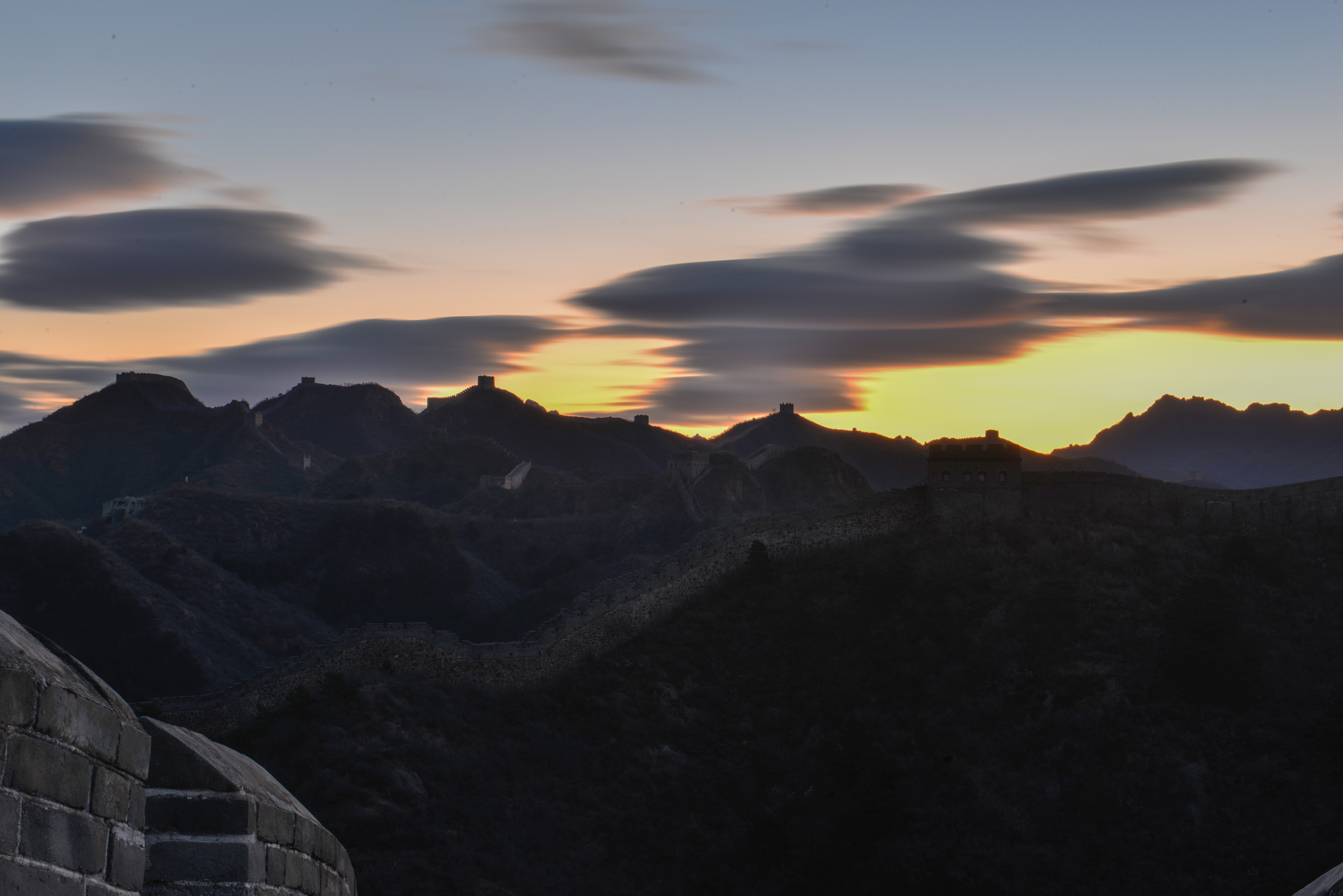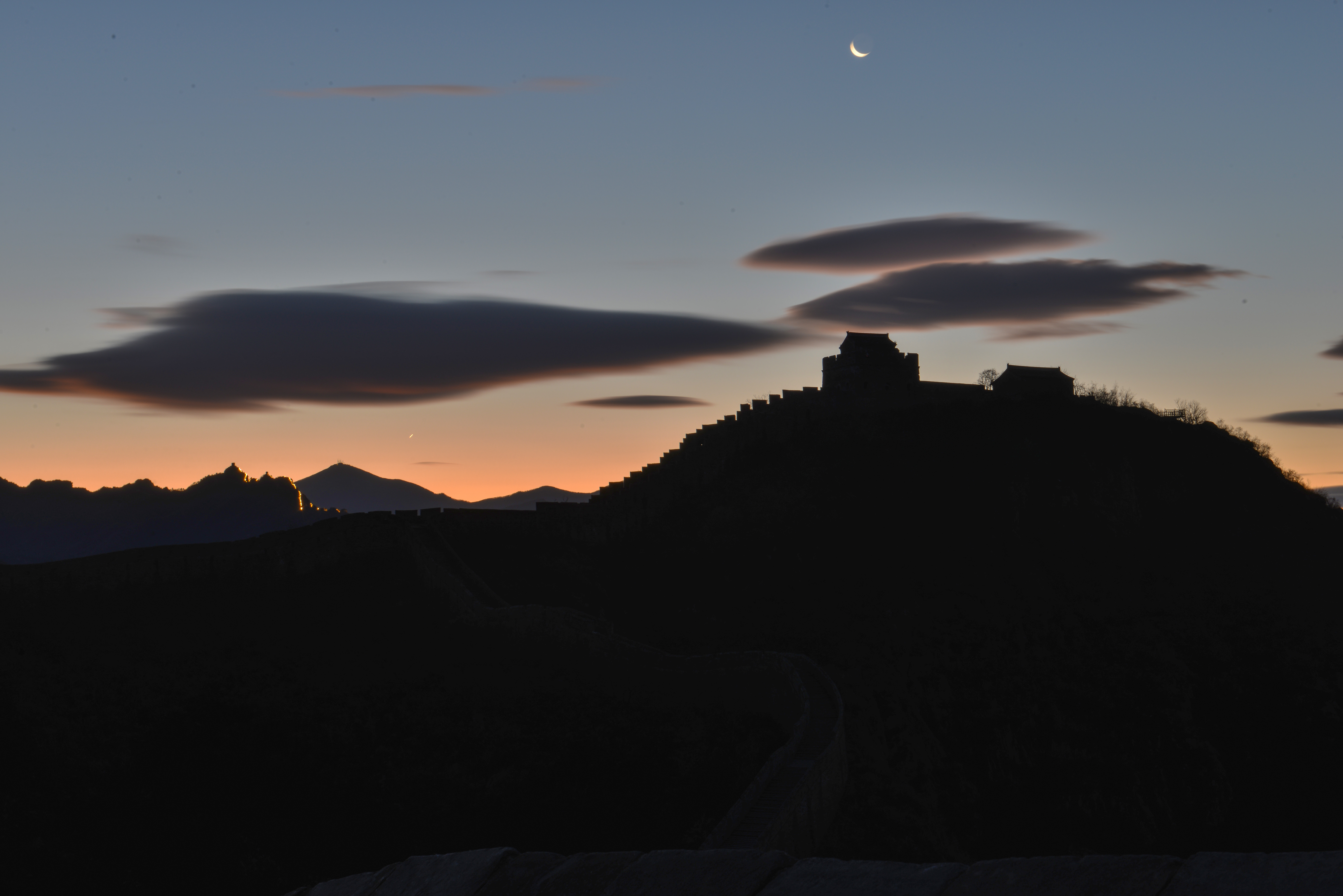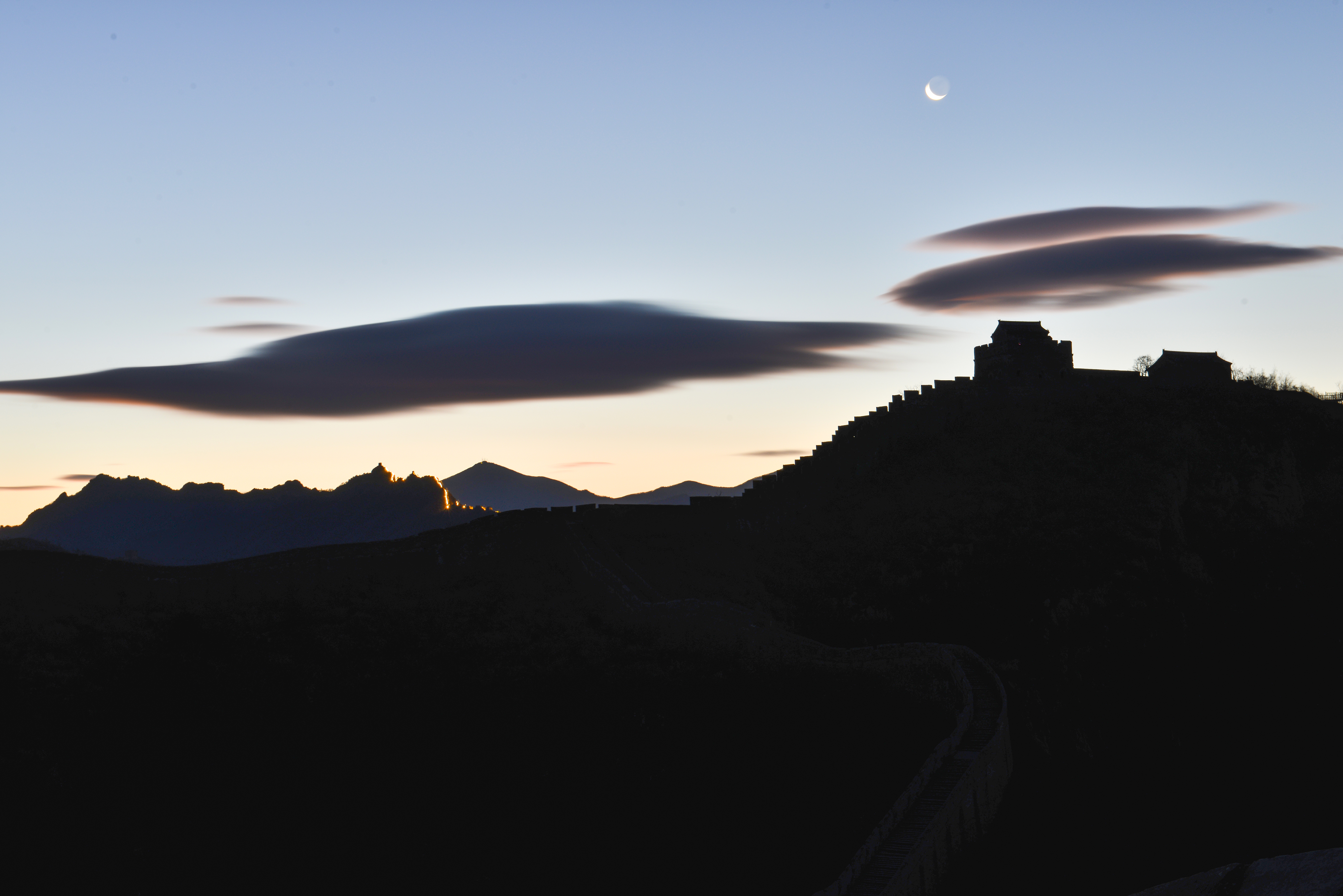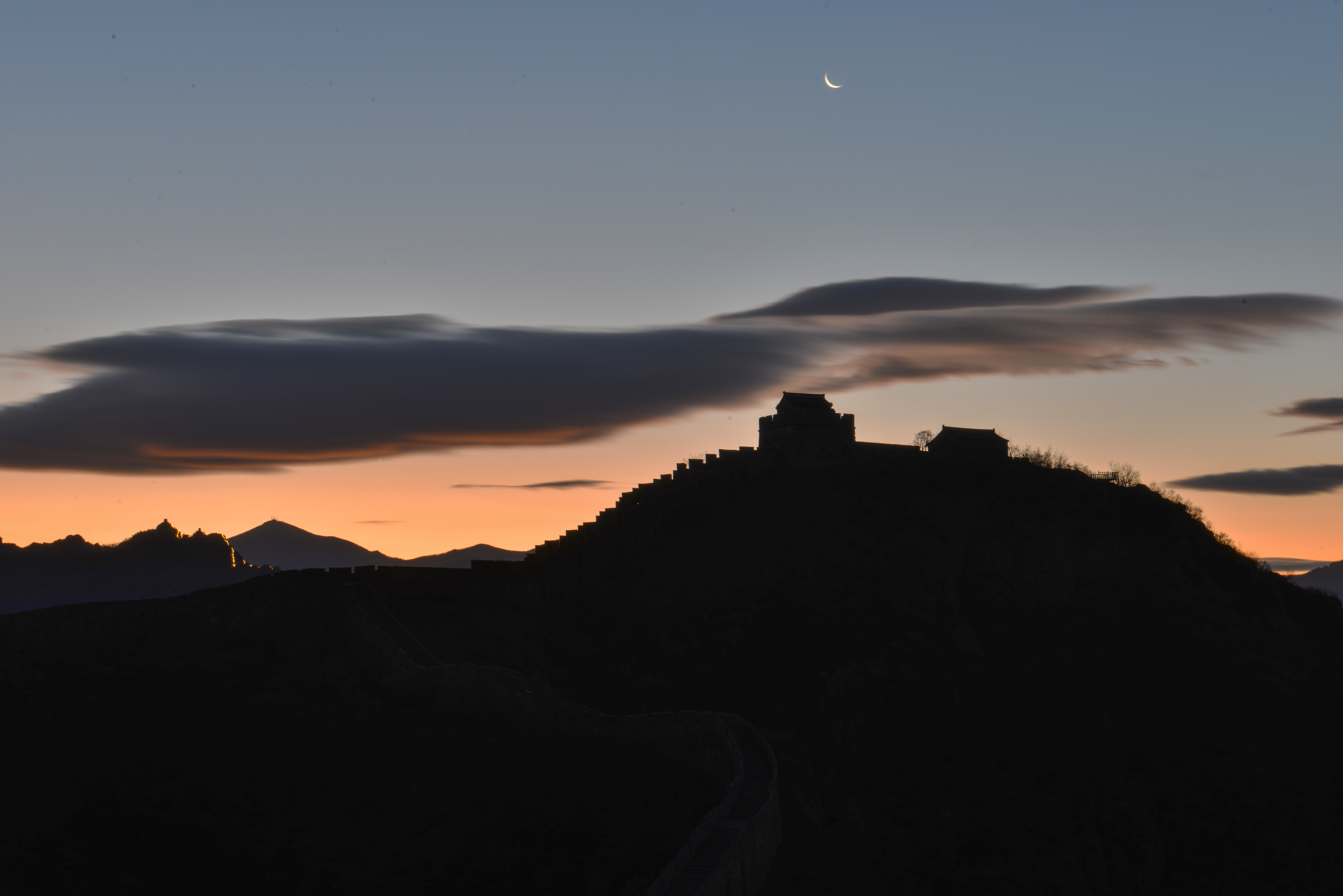 2025年11月18日清晨,河北省承德市滦平县的金山岭长城,出现瑰丽朝霞景象。云霞璀璨夺目,似轻纱飘舞惟妙惟肖,与古长城相互辉映,风光旖旎,美如画卷。