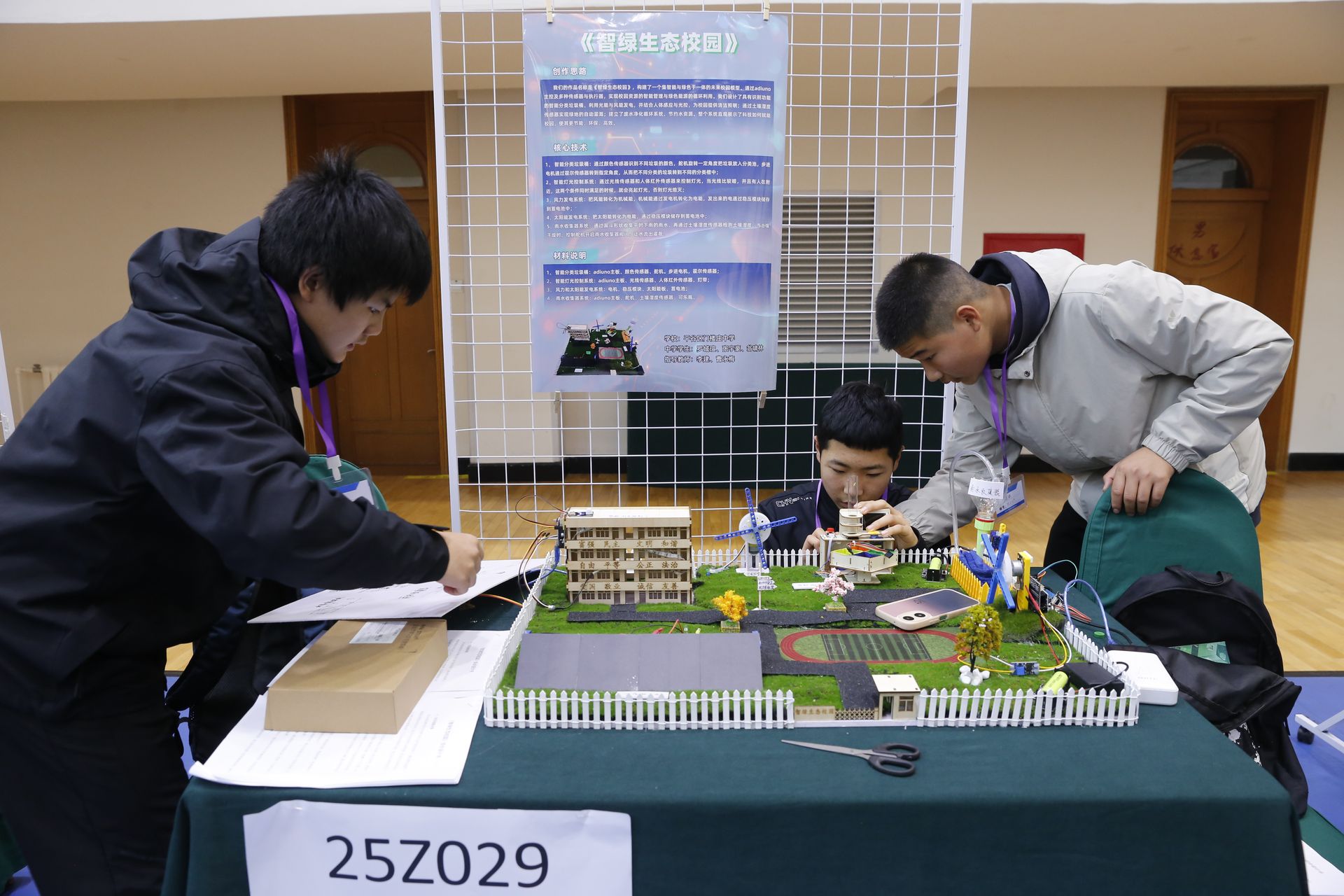 传感器、图形化编程、执行器控制、图像识别算法……这些听起来很专业的技术,被学生们灵活地运用到作品中。能自动分拣垃圾的AI智能分类箱、实时监测并调节水电使用的校园节能系统、精准捕捉空气质量数据的智能监测仪,每一件作品都紧扣“绿色校园”“生态平谷”主题,既充满童趣又兼具实用价值,展现了青少年对科技与环保的深刻理解。