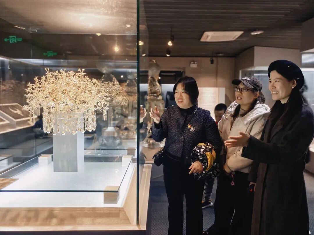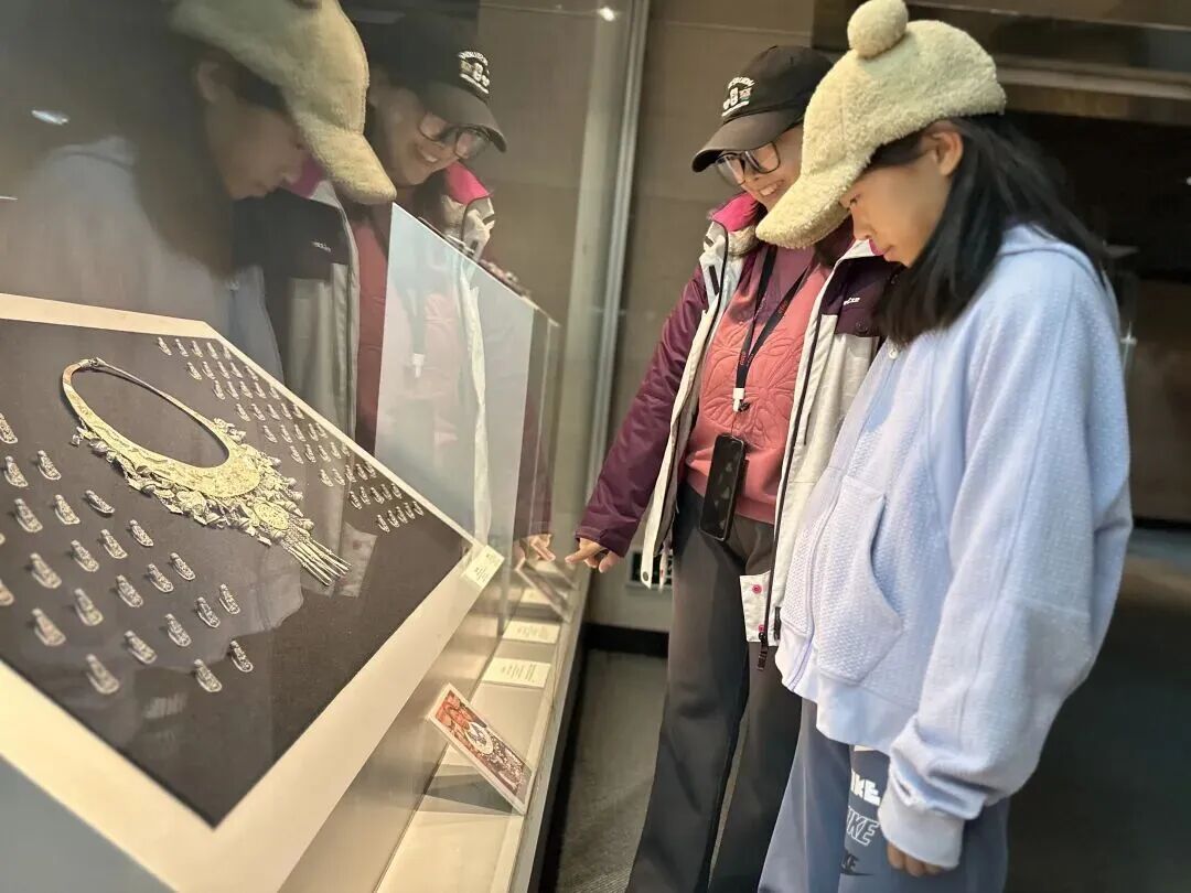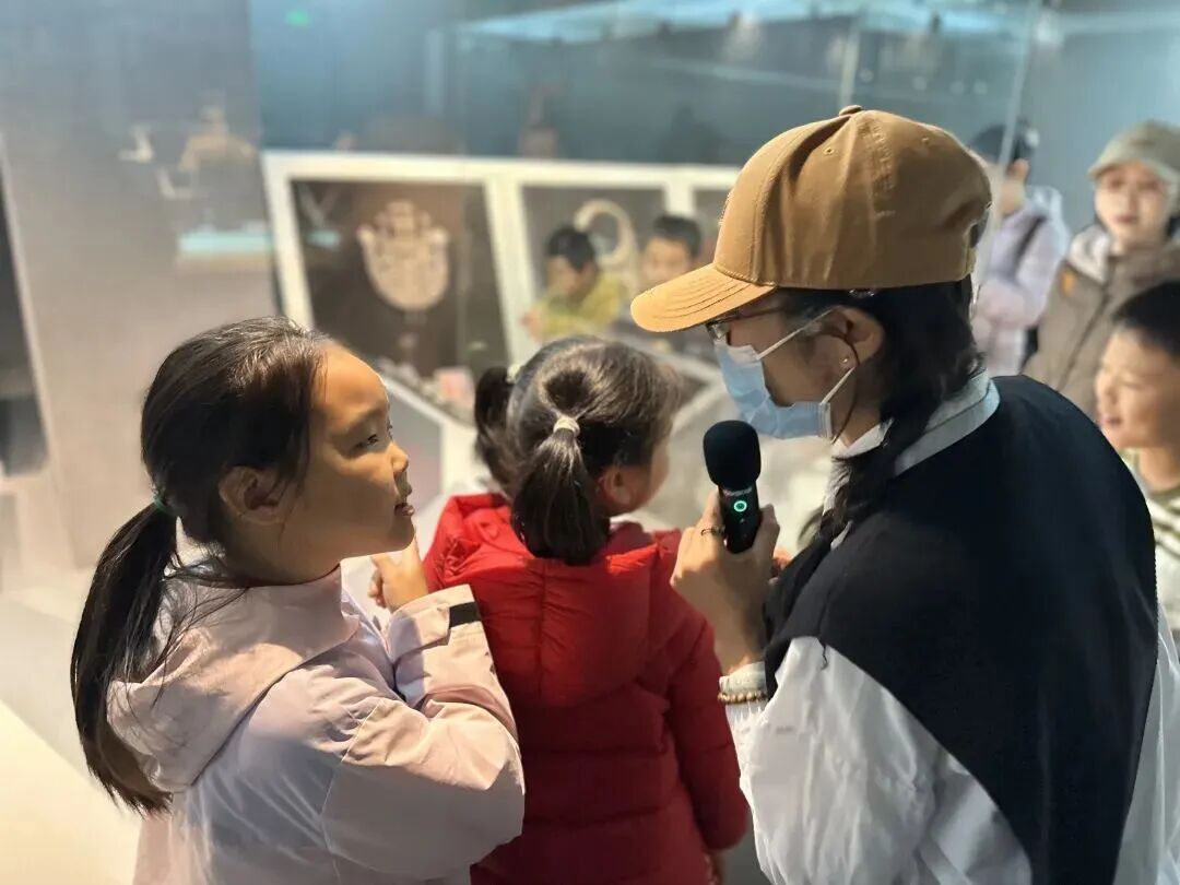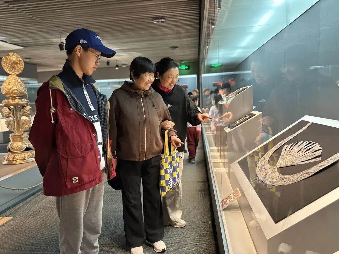 他们不时举起佩戴的电子手表,认真记录下这些精美的瞬间,更踊跃地向讲解员提问互动,求知若渴的神情和积极的参与度,展现了新时代青少年对传统文化浓厚的兴趣与学习的主动性。