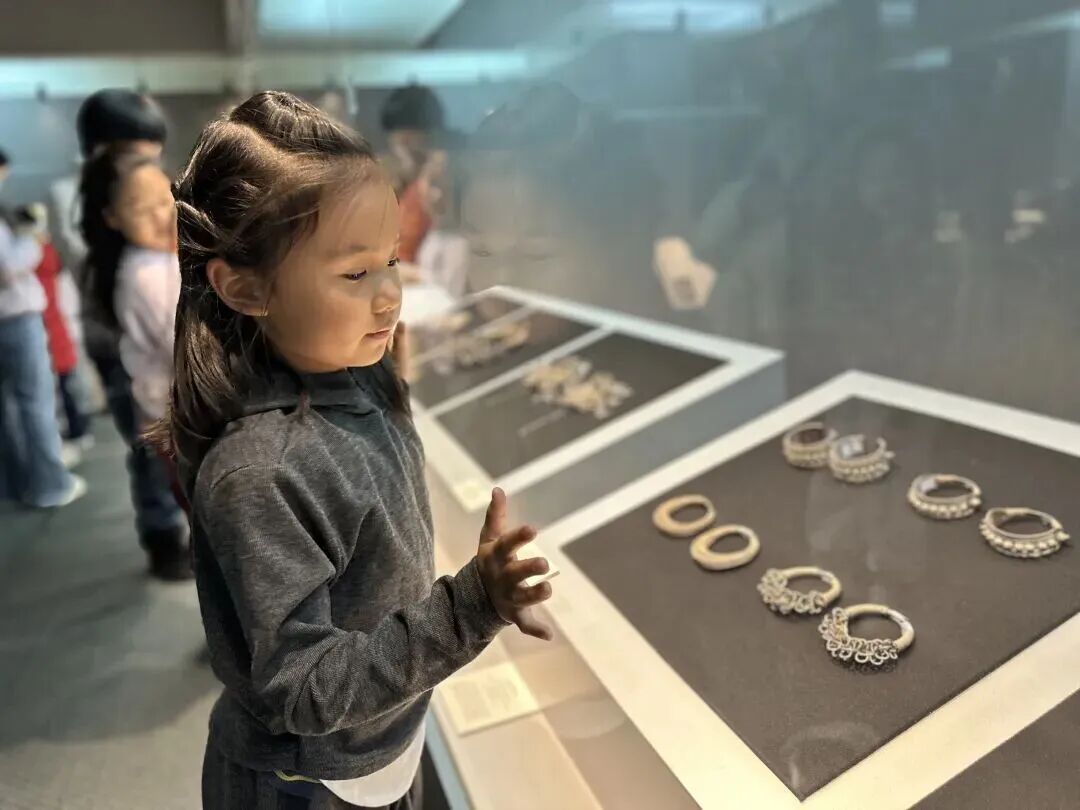 每一件展品,无论是精巧的刺绣、华丽的锦缎,还是独具匠心的饰品与手工制品,都深深吸引着孩子们的目光。