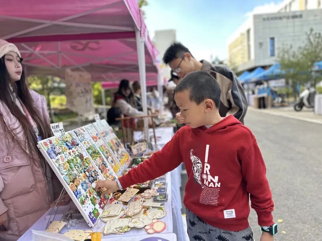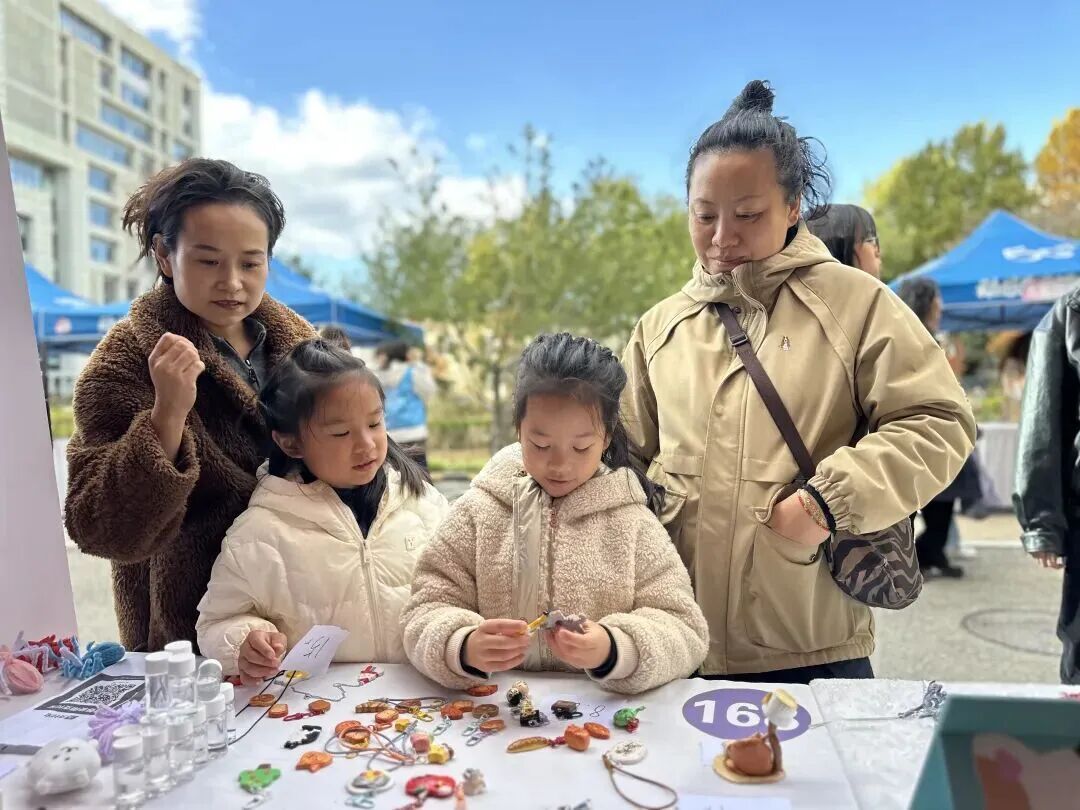孩子们和家长们兴致勃勃地穿梭于各个摊位之间,欣赏、询问、交流,亲身触摸和感受这些充满“新文化、心创意”的作品,体验着传统文化元素与现代设计理念碰撞所产生的独特魅力,现场气氛热烈而融洽。