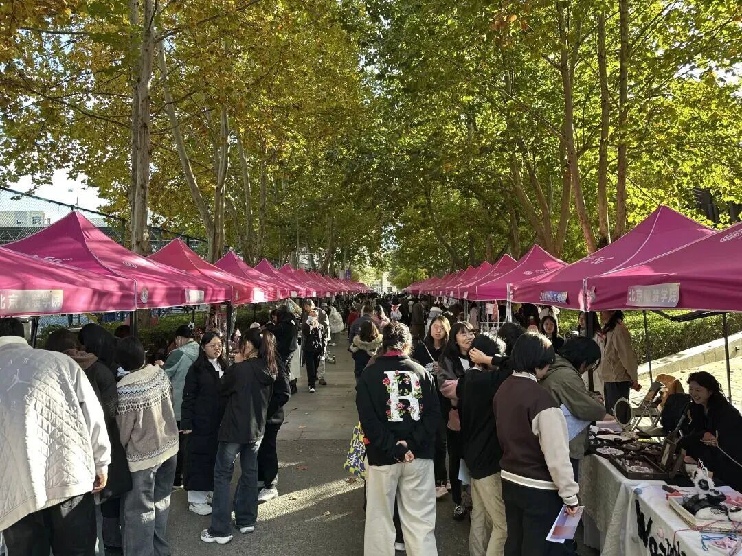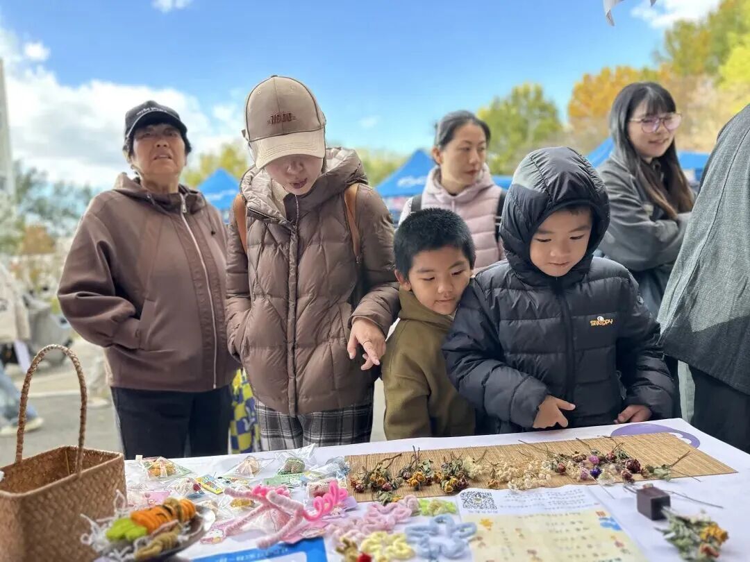 意犹未尽地离开博物馆后,活动队伍移步至北服学院精心打造的文创集市。这里汇聚了以北服学子为主,包括其他高校学生自主创作的各类时尚饰品、文创产品。集市上创意涌动,新意盎然,每一件作品都闪耀着年轻设计者独特的构思与才华。