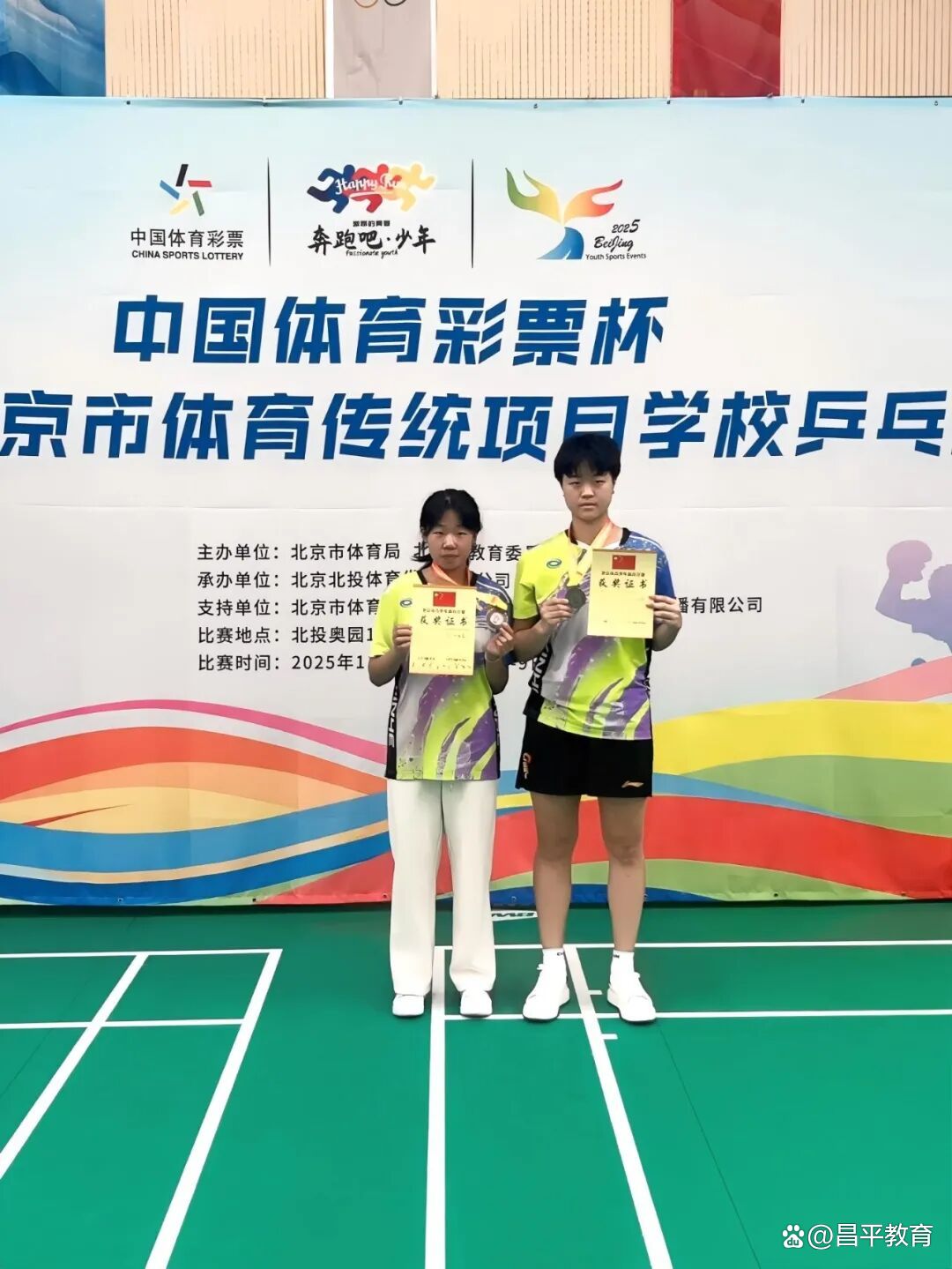在2025年中国体育彩票杯北京市体育传统项目学校乒乓球比赛中,昌平一中教育集团、北京育翔小学回龙观学校、昌平第二实验小学三支队伍强势出击,在激烈角逐中捷报频传。