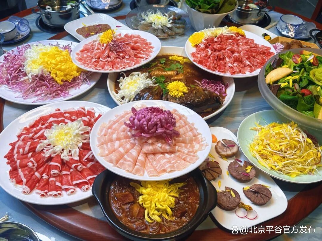 食用菊花不仅美观,还具有良好的养生保健功效。自2007年开始发展食用菊花产业,大兴庄镇已连续举办17届菊花美食文化季,衍生出鲜食、泡茶、焖、蒸、煮、炒、拌、炸等丰富多样的食用方法,既能清涮火锅、切丝入馅制成“菊花饺子”“菊花点心”等,也可以深加工做菊花茶、菊花酒。镇内更有5家以食用菊花为主题的特色餐厅,游客在此可享特色菊花宴,还能品尝到传统香肠、干炸豆腐丸子、枸椒子手撕饼等一系列平谷地道美食,感受创新与传统的味觉碰撞。食用菊花产业的发展,还带动袖珍西瓜、叶酸初产蛋、红提葡萄、紫皮大蒜、红美人柑橘、美早樱桃等特色农副产品销售,进一步丰富了乡村产业格局。